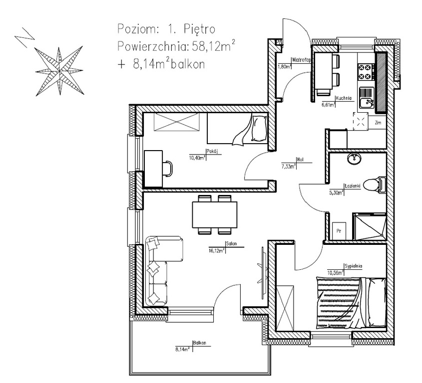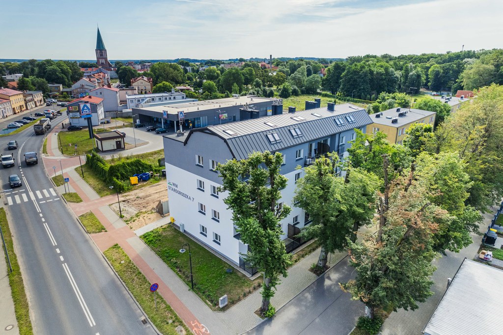 A three-room apartment with a large balcony for sale in a newly built block of flats at Starogrodzka Street in Drawsko Pomorskie. Located in a low, three-story building with a silent elevator and an underground garage. Apartment in developer's standard, available for sale. Exemption from 2% PCC. The area of 58.12 m2 consists of: * Living room (16.12 m2) with a large balcony on the west-south side; * Bedroom (10.56 m2) on the north-west side; * Room (10.40 m2) west-south side; * Separate kitchen with window (6.61 m2) * Bathroom (5.30 m2); * Hall (7.33 m2); * Vestibule (4.50 m2). Purchase of a parking space located in the garage under the building (the elevator goes to -1) for an additional fee of PLN 50,000. Storage room for an additional fee of PLN 17,000 – PLN 20,000 depending on size. Rent PLN 227.65 (the rent does not include the fee for waste disposal, cold water and sewage) Apartment facing the sunny west-south side, * cement floors troweled smooth; * white PVC windows; * entrance doors to apartments; * water and sewage installation (approaches, without white installation); * central heating installation; * underfloor heating in the bathroom; * radiators; * condensing central heating furnace. The investment is completed. Located in the green part of the city next to the city park. Fryderyk Chopin. EXCLUSIVE I invite you to the presentation