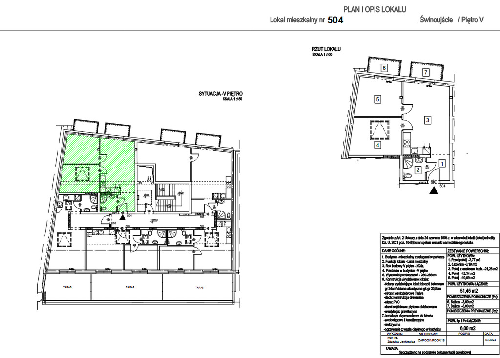 ✩ 504 ✩ with an area of 51.45 m2 + terrace (25 m2) + two balconies (3 m2) on the south side, located on the 5th floor.