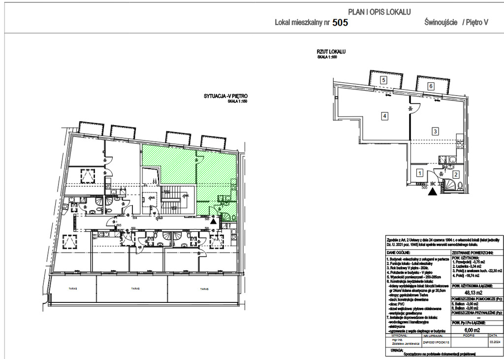We offer an extraordinary penthouse with a spacious terrace of approximately 25 m² , located on the top floor of the building (no. 505), with a beautiful view of the Piast Canal .
