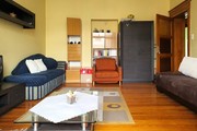 * beautifully preserved floors made of varnished pine boards (except the hall, where there are panels)