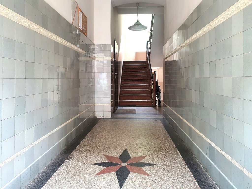 * high ground floor in a 3-story tenement house