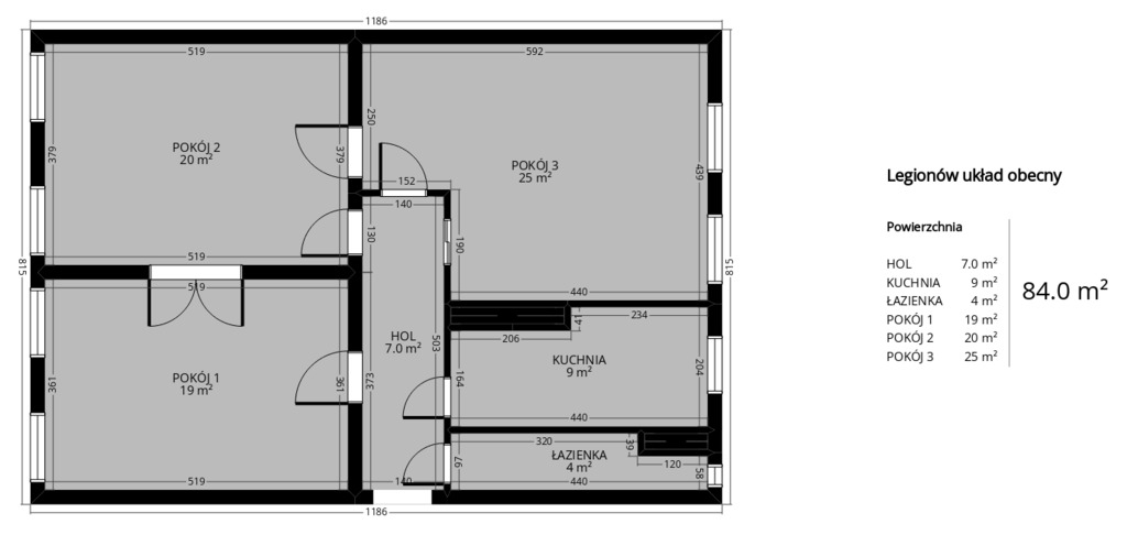 The apartment has a lot of potential when it comes to the arrangement of rooms, as shown in the projections: