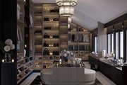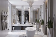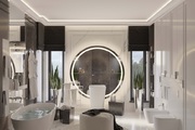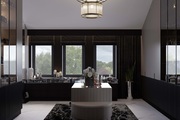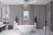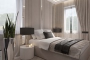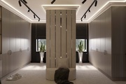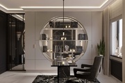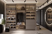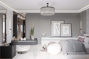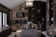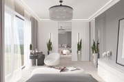One of the two main bedrooms with an area of 20.81 m², located on the ground floor, to the right of the entrance and includes a large, luxurious bathroom with an area of 13.65 m² and a dressing room consisting of two connected rooms, equipped with elegant furniture. The first dressing room has an area of 10.80 m², the second one has an area of 11.95 m². This wardrobe allows you to divide it into women’s and men’s or summer and winter sections, as you wish.
