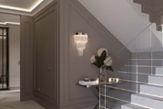 Crossing the threshold, we find ourselves in a spacious vestibule, and on the left there is a wardrobe for coats and shoes with an area of 11.75 m², additionally lit by two windows.