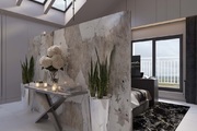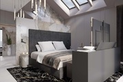 The second master bedroom is located in the attic, accessed via stairs leading through the mezzanine. Bedroom, area: 28.14 m², characterized by high roof slopes, creating a pleasant atmosphere. At the highest point of the room, reaching 4.09 meters, you can feel space and freedom. The private bathroom, with an impressive area of 15.99 m², can easily be called a bathing room, offering exceptional comfort and luxury. The height of the bathroom room from 2.86 to 3.41 m adds a feeling of spaciousness and elegance.