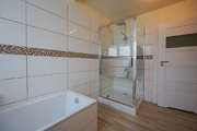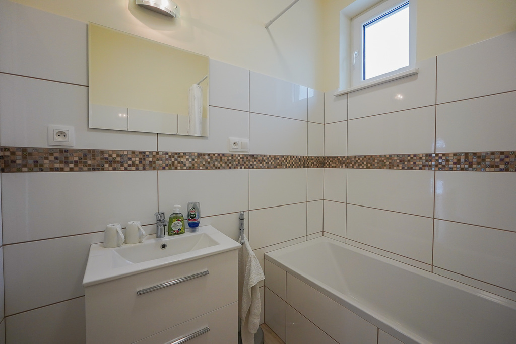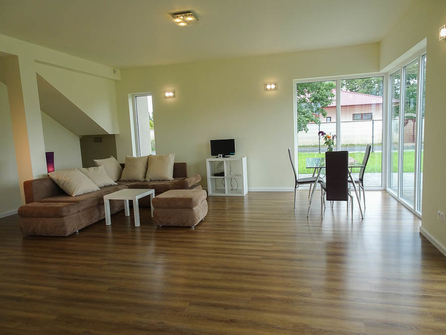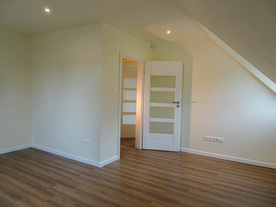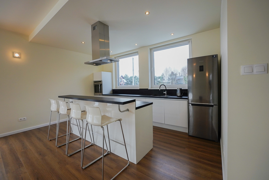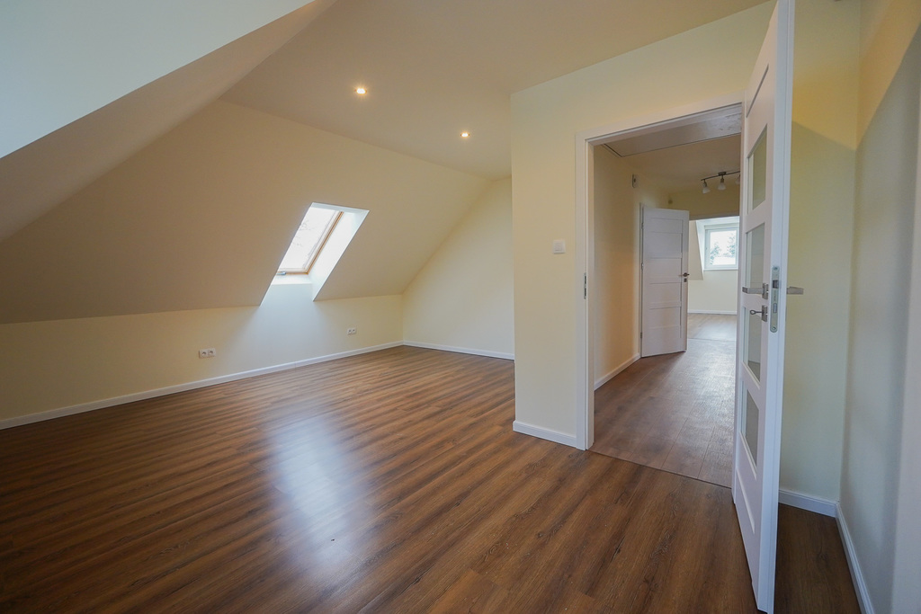 AVAILABLE IMMEDIATELY. Perfectly located new house IN SŁAWOSZEWO NEAR BARTOSZEWO put into use in 2020. Living room, kitchen, 4 bedrooms and two bathrooms and a garage. High quality materials were used for construction. Porotherm, roof covered with ceramic tiles. PVC windows, roof windows. Anti-burglary external doors. House insulated with polystyrene, plastered. Solar panels installed on the roof. Apart from the kitchen with built-in furniture and household appliances, there is no furniture. The tenant can be a company or NATO. HOUSE DESCRIPTION: GROUND FLOOR: living room 32 m2 connected to a bright kitchen 17 m2, bedroom 14 m2, hall 15.10 m2, bathroom with shower cabin, boiler room, garage for 1 car. Panels and terracotta on the floors. Built-in kitchen furniture with household appliances: fridge with freezer, 60 cm dishwasher, ceramic hob, oven. FIRST FLOOR: 3 bedrooms with, among others, skylights, bathroom 8.5 m2 with bathtub, shower cubicle, windows in bathrooms on the ground floor and on the first floor. Small unused attic above the first floor that can be used as a storage room. Comfortable, wide stairs between floors, with a landing. Water and sewage installations have been brought to the building. Heating – modern heat pump and photovoltaics. Large windows, nicely illuminating the interior. From the windows view of distant properties and greenery. The area in front of the building with grass. Fence with gate. Location near the forest, near walking routes leading to Lake Świdwie. Horse stud nearby. Very charming place. Garden on the south and west sides. Rent PLN 6,500 + operating fees water, sewage collection, garbage collection, electricity. So far, heating has been provided by a heat pump.