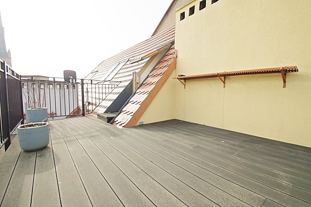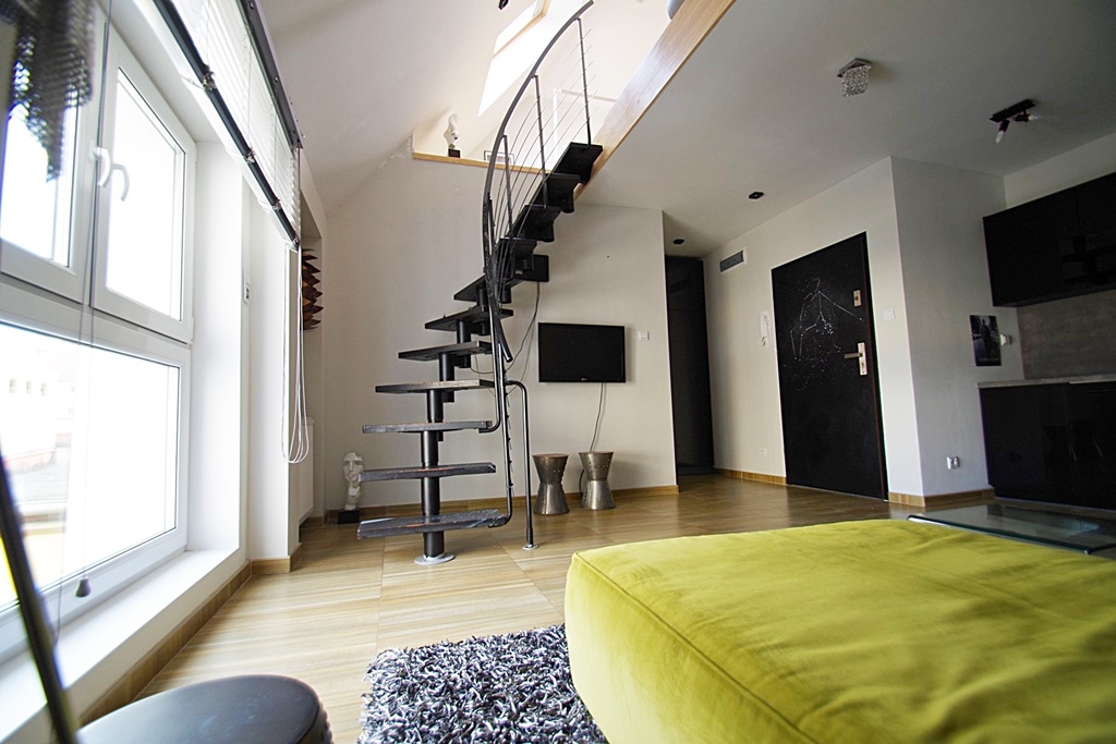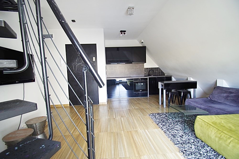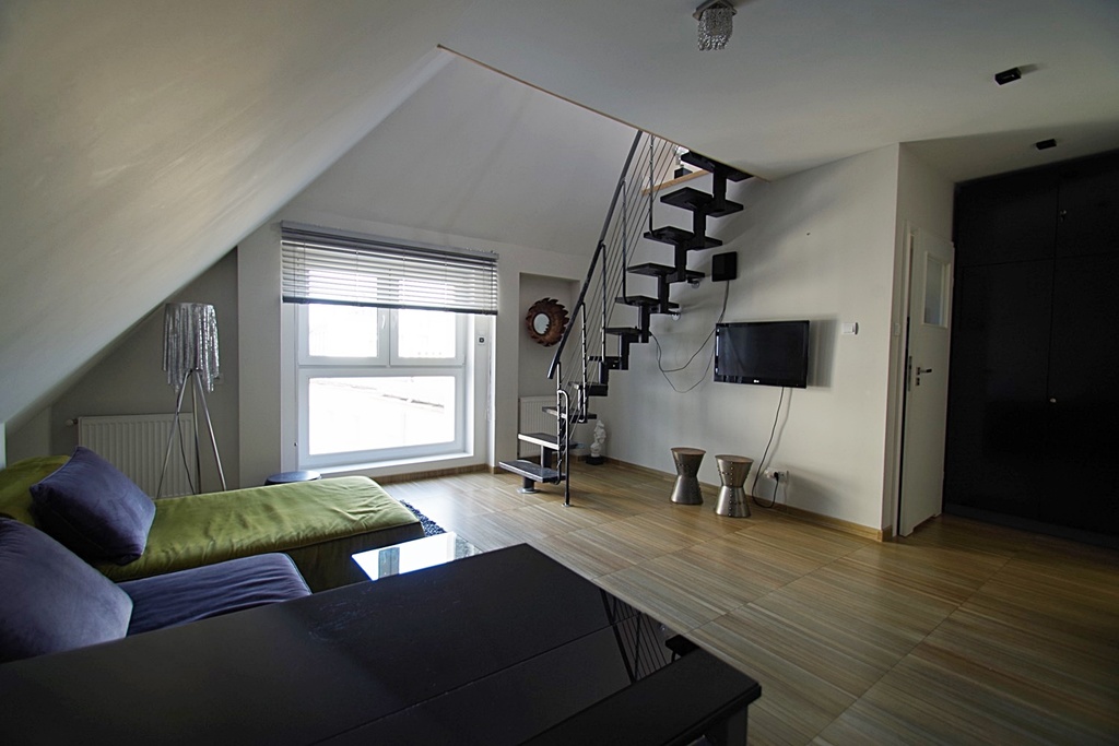 A beautiful two-level apartment in a renovated tenement house. The usable area of 34.58 m2, a total of about 50 m2, consists of a living room with a kitchenette fully equipped with a fridge, an electric cooker, an oven and a dishwasher, a bathroom with a toilet with a window and a large bedroom on a partially open mezzanine. A huge advantage of the premises is the 11-meter roof terrace accessible from the mezzanine with a panorama of the city. The apartment is very well lit thanks to large windows, warm and cozy. Heating with a two-circuit gas stove (bills in the amount of about PLN 200 every two months). Rent to the Community in the amount of PLN 242, including, among others, advance payments for cold water. Additional paid energy. The building is situated in a great location in the heart of the city. I cordially invite you to the presentation. Keys in the office