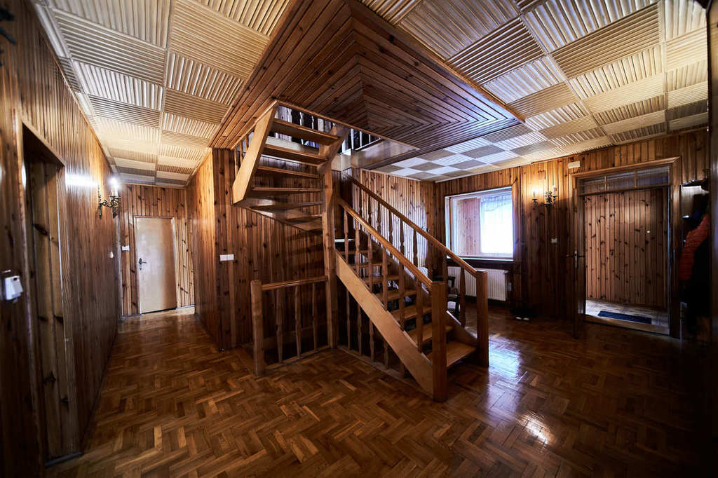 It is a two-story house with an attic and a ground floor with a separate entrance. The building’s communication route is an internal staircase running from the basement to the attic. The stairs and wooden parquet floor, the wainscoting of the corridor walls and all doors on the ground floor, first floor and attic are made of coniferous wood. Sewage and city water.