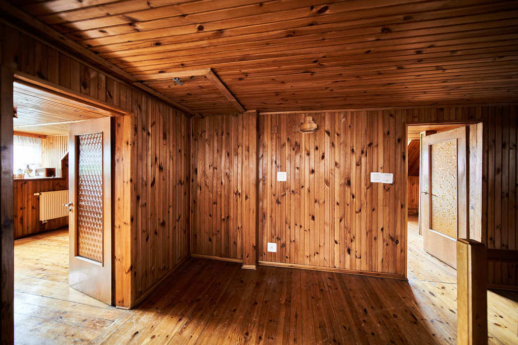 Brick structure, ceramic brick, DMS and wooden ceilings. Additionally, external insulation was carried out with thickened polystyrene of approximately 10 cm. The attic and some rooms are covered with wooden paneling.