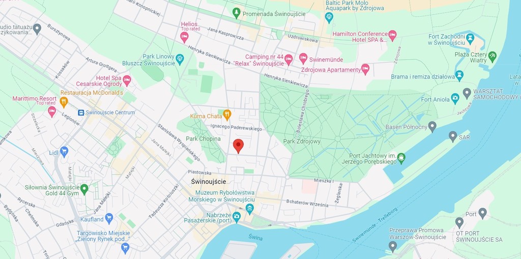 The apartment is located in the Old Town, between Park Zdrojowy and Chopin Park. It takes only 10 minutes to walk to the ferry crossing, and the same to the promenade and the beach. In the area you will find the most important amenities: Galeria Corso, Biedronka, Lidl, restaurants, pubs, sports field, tennis courts, amphitheater…