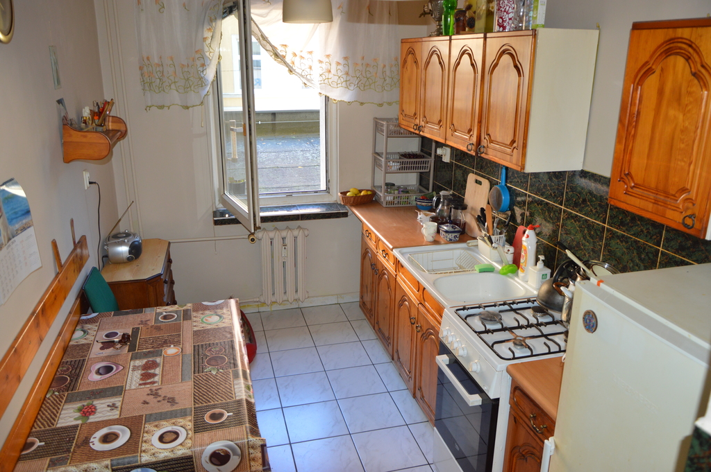 The apartment is located right next to Żeromski Park – in an excellent location combining proximity to the very center with peace and quiet. During a 10-minute walk you can reach Wały Chrobrego, Galaxy or Hanza Tower), and the second largest green area in Szczecin (Żeromski Park has 24 ha!) is right in front of the house. The apartment is located on the first floor of a tall block from the 1990s. Residents have two elevators at their disposal, and there is a ramp leading to the staircase, thanks to which access to the property is free from architectural barriers. The total area of the property is 55.9 m2 and consists of: * spacious living room with an area of approx. 26 m2 with access to a built-in balcony – bedroom with an area of approx. 15 m2 – bright, well-arranged kitchen with an area of approx. 7 m2 – bathroom with toilet area approx. 4 m2 – hall. Due to the fact that the windows face the side street, the apartment is quiet and peaceful. A big advantage of the property are low operating costs – the rent is PLN 600 and includes advance payments for hot and cold water, heating, gas (lump sum), garbage, property management and renovation fund. There are panels on the floors in the rooms and rattling noises in other rooms. Painted walls, tile apron in the kitchen, tile bathroom. A standard apartment in need of renovation, but with great potential and arrangement possibilities. The apartment includes a basement. There are public parking spaces in front of the building. In close proximity to all necessary infrastructure: shops (Galaxy, CHFala, Manhattan), Water Factory, swimming pool of the Maritime University of Technology, Polish and Contemporary theaters, transport hubs. We encourage you to personally verify the offer and arrange a presentation and negotiations. Exclusive offer.