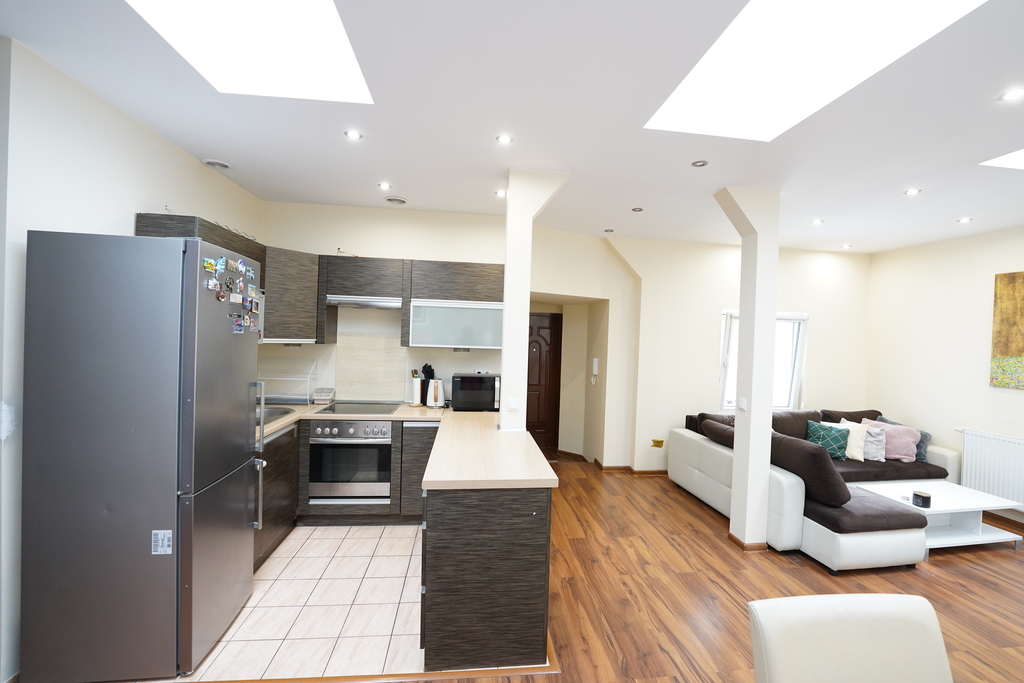 Attic adaptation from 2010 in the very center of the city, at ul. Piłsudskiego right next to Rodła Square. The usable area of the property is approx. 68 m2 and consists of: – living room approx. 20 m2 – kitchenette approx. 4.5 m2 – bedroom approx. 12 m2 – bedroom approx. 13 m2 – bathroom approx. 5.3 m2 – dressing room approx. 5.5 m2 The owner has exclusive use of there is a corridor with a storage room with an area of approx. 12 m2, which is located in front of the entrance to the apartment. The corridor is not the property of the owner. The apartment is fully furnished and equipped with basic household appliances (stove, fridge). Perfect apartment for investment. The rent due to the community is approximately PLN 315 (including advance payment for cold water, renovation fund, waste disposal, operation, common costs). The rent includes gas heating, which depends on gas consumption. (rent calculated for two people) The apartment is very well lit – large PVC windows in the rooms and additional roof windows in the living room illuminate the rooms. The height of the rooms is 2.6 m and the height of the roof windows at the highest point is 4.1 m. The walls are painted in subdued colors and there are panels on the floors. The location, condition of the property and full furnishing make this apartment a great option for an investor looking for a rental option. The tenement house is one of the city's monuments. The staircase has beautiful stucco – currently in need of renovation. The windows have been replaced. Great location in the very center of the city. Nearby there are schools, universities, a kindergarten, numerous shops, restaurants and service and commercial outlets. We are a few minutes' walk from Jasne Błonia. Tram and bus public transport is nearby. I invite you to the presentation.