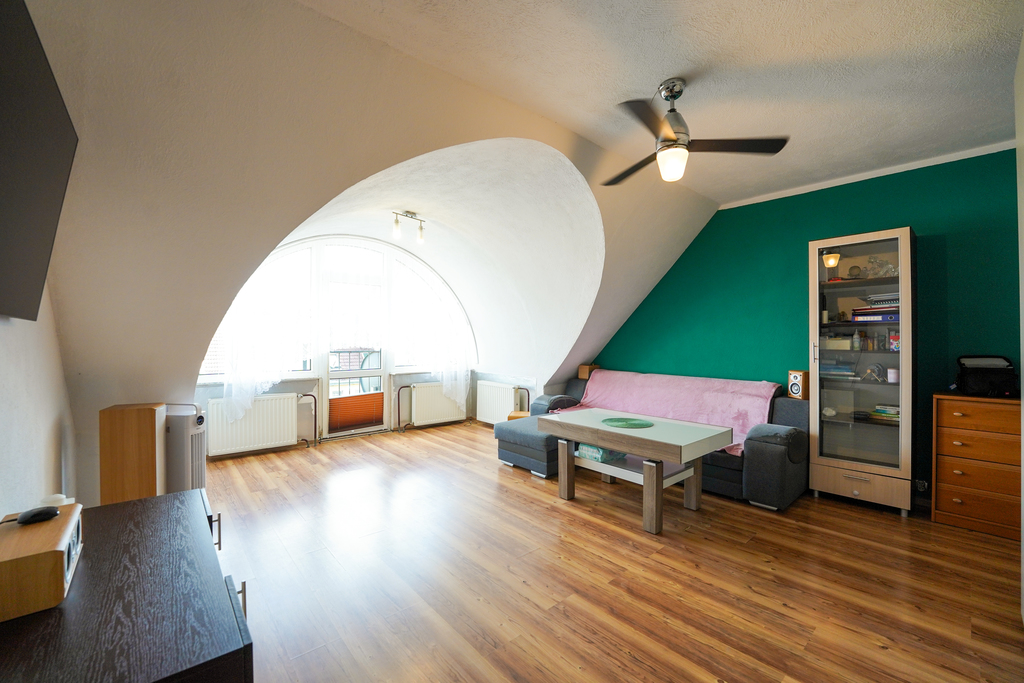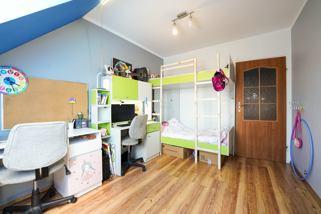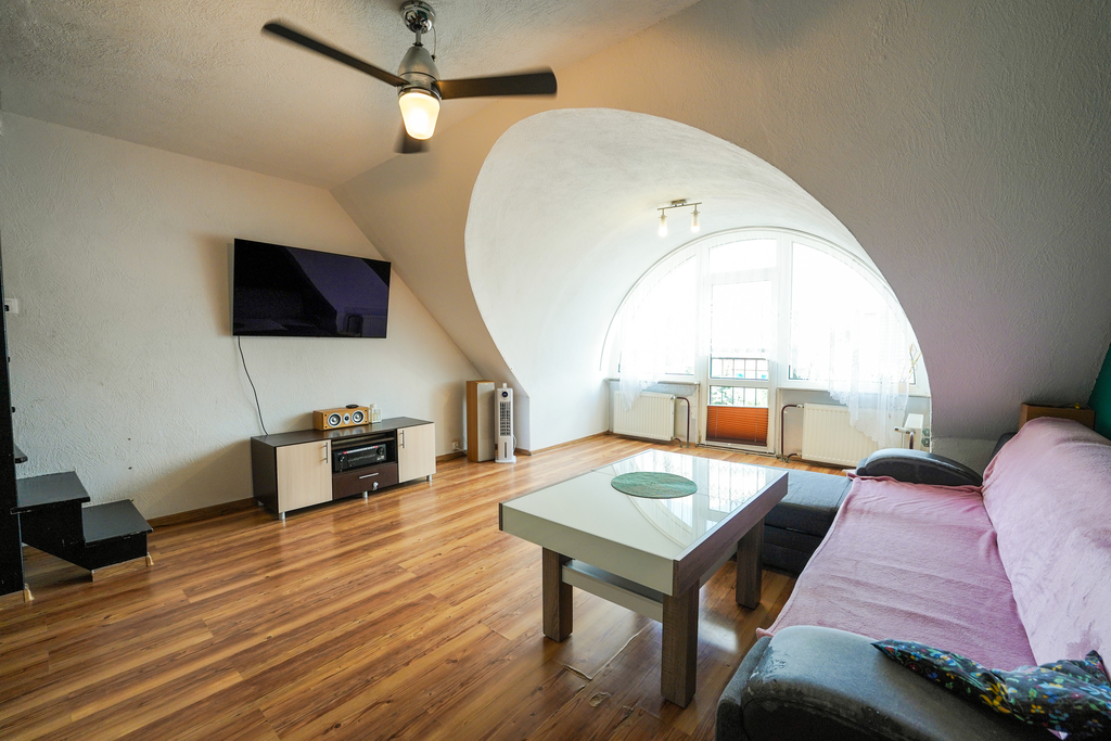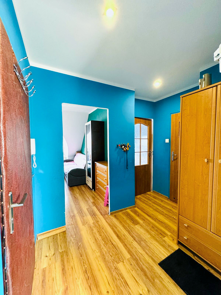 A two-level, 3-room apartment for sale, located on the third floor of a four-story building in Przecław. Form of ownership – cooperative ownership right to the premises – possibility of purchase by persons from outside the European Union. The apartment with a usable area of 45.83 m2 consists of: – Spacious living room, – Bedroom, – Kitchen, – Bathroom, – Corridor. Additionally, the attic part with an area of 31.50 m2 was converted into a room with many arrangement possibilities. Apartment in good condition, requiring refreshment or minor renovation. The risers were replaced and the bathroom and kitchen were renovated in 2023. The rent for a 5-person family is PLN 472, plus electricity and gas. Gas heating from a two-circuit furnace, additional floor heating mats in the kitchen and bathroom. Additionally, the apartment includes a basement. Perfect property for a family or investment. Very well-developed infrastructure, close to school, kindergartens, swimming pool, gym, clinic and public transport. I invite you to the presentation!