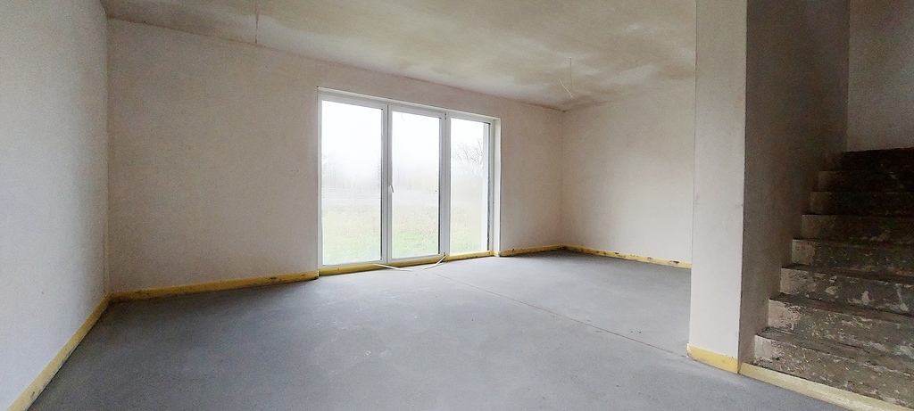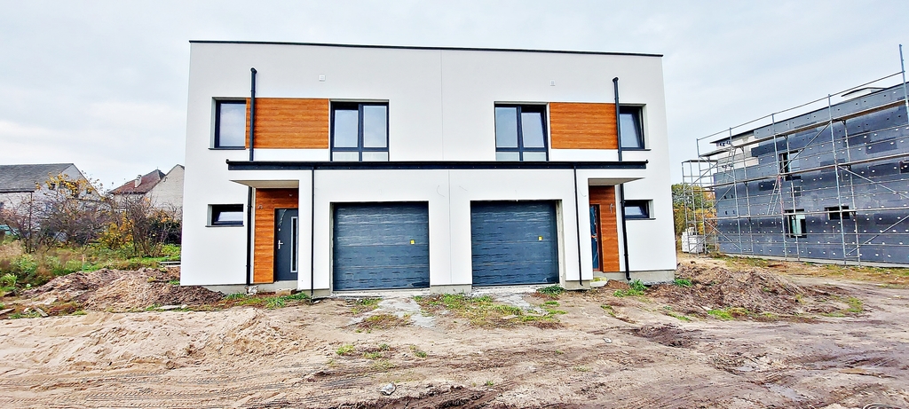 I am selling a semi-detached house in developer standard with a development area of 115 m2 and a plot of 400 m2. The location of the property is very charming, with access to the Ina River and a development of single-family houses nearby. The house is located in close proximity to Stargard, there are shops, schools and bus stops nearby, the property is located 2 km from Stargard. * Total area 115 m2 * Usable area with garage 98 m2 * Plot area 400 m2 (access to the plot via a dirt road), the plot will be fenced on four sides. The house consists of 4 rooms, 3 bedrooms (possibility to create four bedrooms at the expense of the laundry room), 2 bathrooms, one on the ground floor, the other on the first floor, a large spacious living room with a kitchenette on the ground floor with access to a large, sunny garden on the west side with a terrace. Garage connected to the vestibule, with a remote-controlled entrance gate. On the ground floor there is: – Living room with kitchenette 29.04 m2 – Bathroom 2.47 m2 – Vestibule 4.22 m2 – Hall 3.14 m2 – Utility room 2.54 m2 – Garage 17.25 m2 On the first floor: – Room – Bedroom 12.92 m2 – Room – Bedroom 11.29 m2 – Room – Bedroom 9.54 m2 – Bathroom 6.42 m2 – Laundry 4.88 m2 – Corridor 5.42 m2 Developer’s condition (without a heat pump with a subsidy of PLN 7,000) – PLN 539,000 gross – roof – PVC foil, insulation EPS 100 gr 20-32 cm Styrofoam – electrics with sockets – gypsum plasters – plumbing – without heat pump – floors – EPS 100 Styrofoam – insulation graphite Styrofoam 20 cm thick, silicone plaster – deep well – septic tank – collection premises for use – energy certificate. I recommend it due to the location and price. I cordially invite you to the presentation.