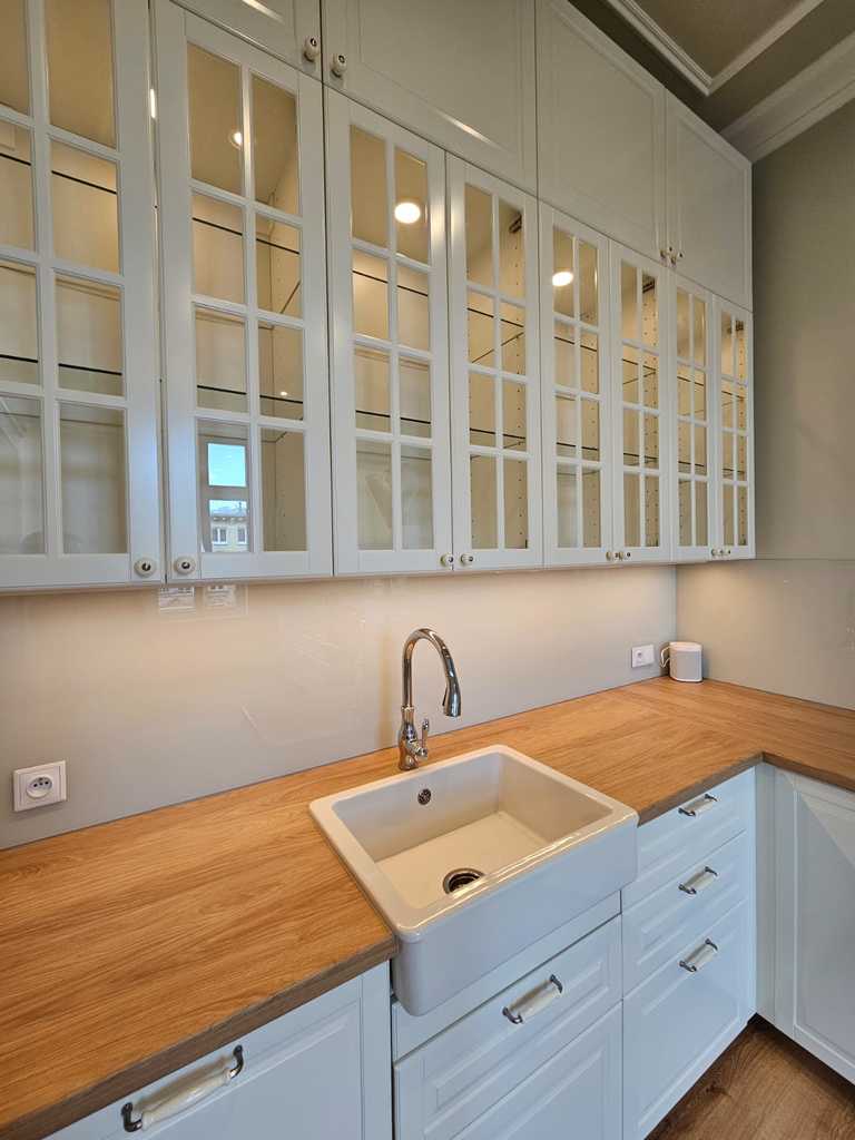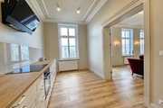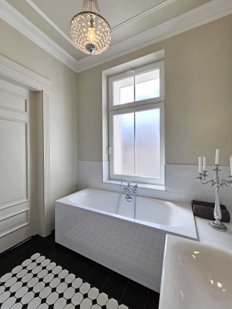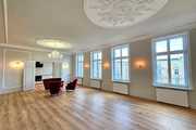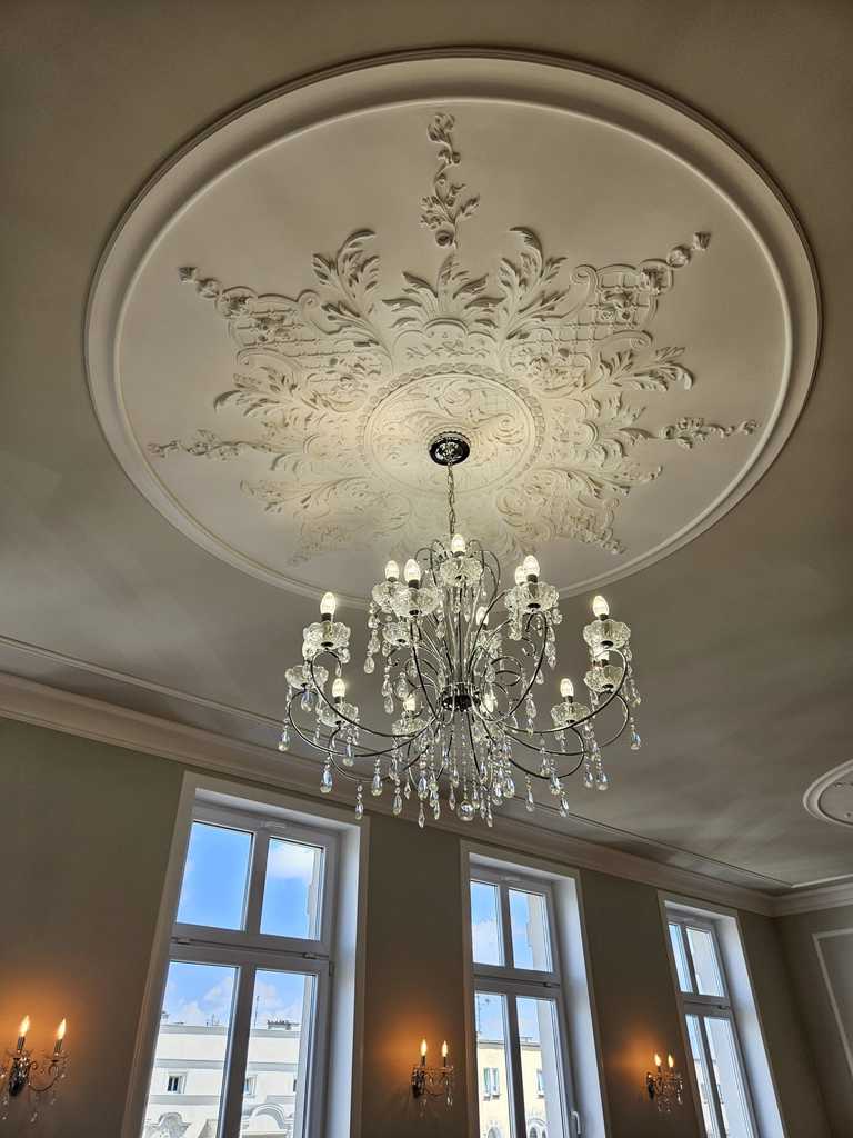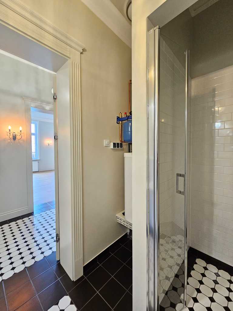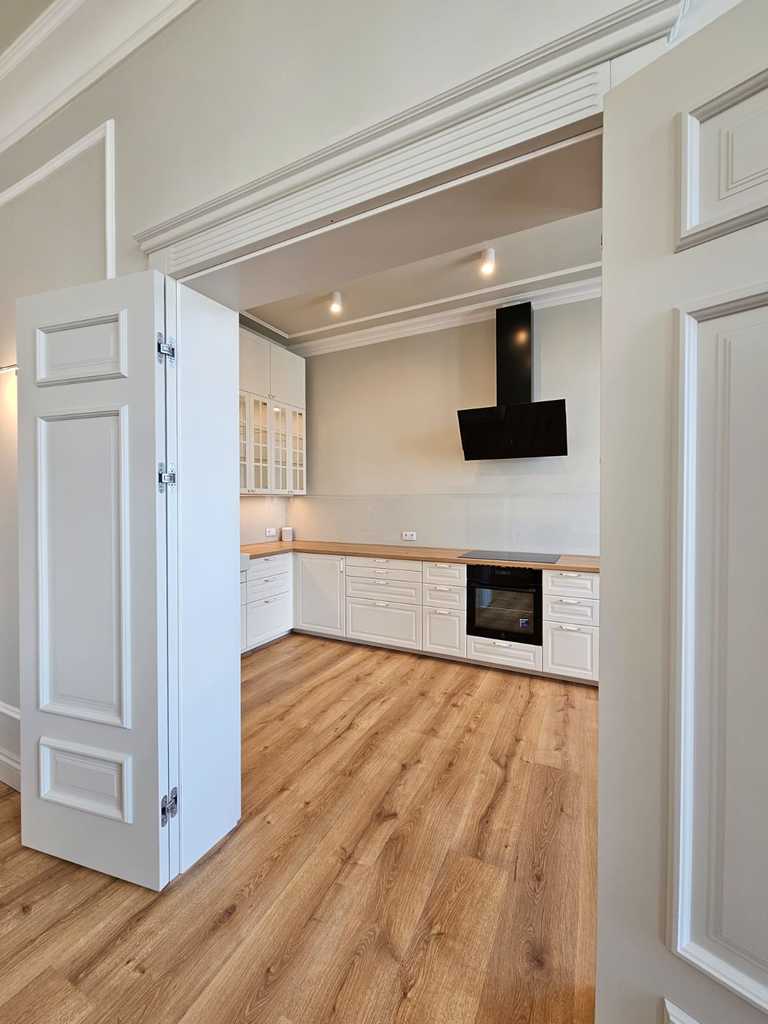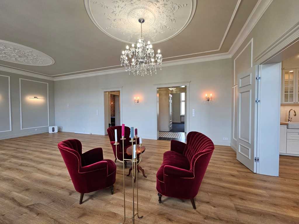 We have a unique offer of a beautiful apartment in a renovated tenement house located in a charming part of Śródmieście Szczecin. The residential premises with an area of 124.25 m2 in the land and mortgage register (due to the removal of a wall of approximately 130 m2) are located on the 3rd floor, close to Aleja Papieża Jana Pawła II. This is a representative part of the Center with tenement houses included in the register of monuments. Layout of rooms. A beautiful and huge living room of approx. 50 m2, created by combining two rooms, very well sunny thanks to four windows. A bedroom with an original preserved red brick wall, with space for a wardrobe and a passage to a private bathroom with a window. A smaller room serving as an office. From the living room there is access to a spacious, fully equipped kitchen. From the corridor we enter the second bathroom, with a new second-circulation gas furnace, a shower, a washbasin and a toilet. There are high-class panels on the floor, hotel carpets in the rooms and mosaics in the hall. Numerous plaster decors on the walls and ceilings give the interior an amazing atmosphere. Numerous wall lamps and crystal chandeliers emphasize the character of the apartment. Custom-made door joinery that will be appreciated by the most demanding customers. Everything is finished with the highest quality materials with attention to detail. The property has been completely renovated. Old plasters were removed and new, plastered walls and ceilings were installed, all electrical wiring, water and sewage installations were replaced, 20 cm wool and vapor-permeable foil were placed on the ceiling, just like in the property on the floor below, the floor in the bedroom and in the office was insulated and soundproofed with cotton wool. . Administrative rent of PLN 560 (rent PLN 210 + renovation fund PLN 348) including advance payments for cold water, staircase cleaning, garbage collection and renovation fund. The apartment has a large basement. The facade of the tenement house after renovation. If you are looking for a comfortable apartment in the city center, spacious, with beautiful stucco, we invite you to view this unique offer. Call and arrange a showing! We invite you!