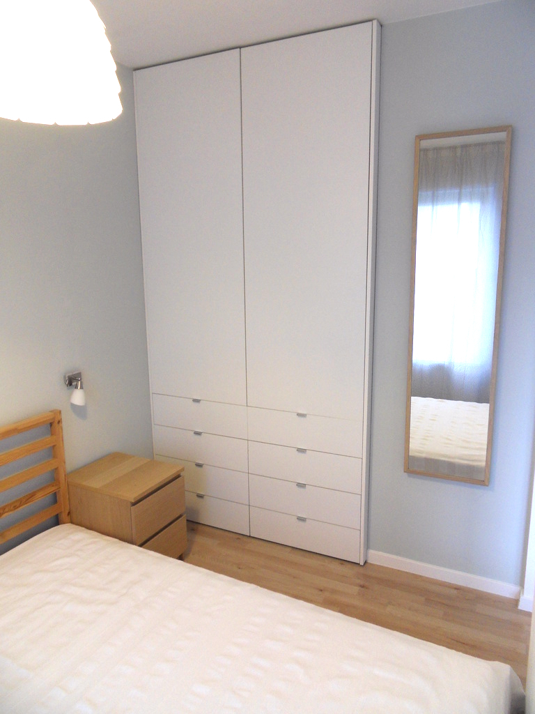 A nicely finished apartment located in the center, close to Wały Chrobrego and the Polish Theater. Close to public transport and the Park. Building from 2014 with modern elevators. The premises are located on the top 5th floor and have an area of 37 m2. The apartment consists of a corridor with a large built-in wardrobe, a living room with a kitchenette, fully furnished and equipped (dishwasher, microwave oven, fridge, dining table, sofa and furniture) and a bedroom alcove with wardrobes with a double bed. A bathroom with a shower and a built-in wardrobe containing, among others, a washing machine. The entire apartment is finished in bright white colors and made of very good materials. Additional fees include community rent (PLN 194.19), including advance payment for garbage, additionally: water, heat – SEC, electricity and Internet. The apartment is available immediately. Great location and beautiful apartment. We invite you. Deposit PLN 3,000. No pets. The apartment is available from August 12, 2024, presentations possible earlier.