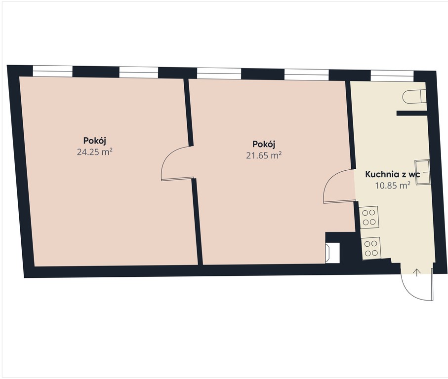 We invite you to familiarize yourself with the offer of a two-room apartment with a potential area of 56.2 m2, located at Gryfińska Street in Dąbie. Room layout . The apartment is entered through the hall and kitchen, from which there is an entrance to the toilet with a window. From the kitchen there is an entrance to a large connecting room with another room. The rooms are very spacious and well-arranged. There is no bathroom, but it is possible to make one. Standard of the apartment The property requires major renovation. There is no heating in the apartment, the rooms have tiled stoves. A permit and consent from the gas company and the chimney sweeper to perform gas heating are issued. The design for such heating has already been accepted. All windows were replaced with PVC. Boards and panels on the floors. Fees The rent is PLN 240 and includes advance payments for water, garbage, renovation fund (ATUT community). Additionally, electricity and gas (for a gas stove). Building and location The property is located on the first floor of a two-story tenement house – two apartments per floor. Friendly neighborhood. The building is located on the exit route to both the center of Szczecin and the center of Dąbie, as well as towards the route to the sea or the border. Additional rooms The apartment includes a basement. Behind the building, each resident has an assigned garden (use on a perpetual usufruct basis) and a shed for use. Potential The apartment is definitely for people with imagination – there are many possibilities of converting the apartment, e.g. into separate rooms or creating a living room with a kitchenette, as well as a bathroom with a toilet. The property is also suitable as an investment for rent.
