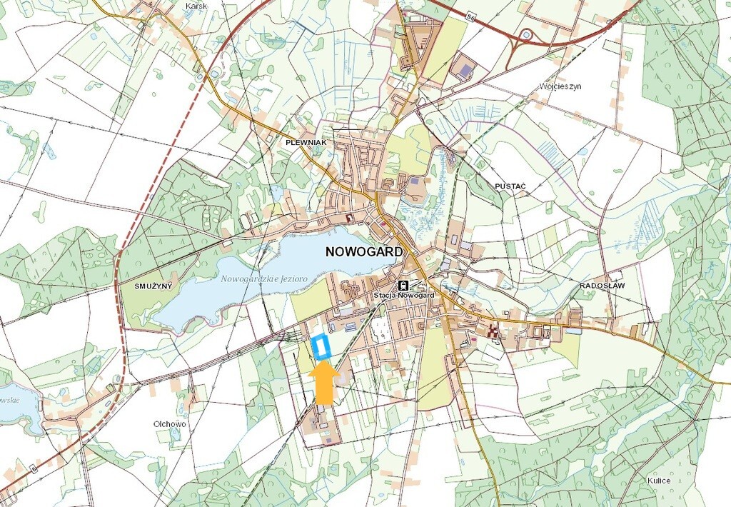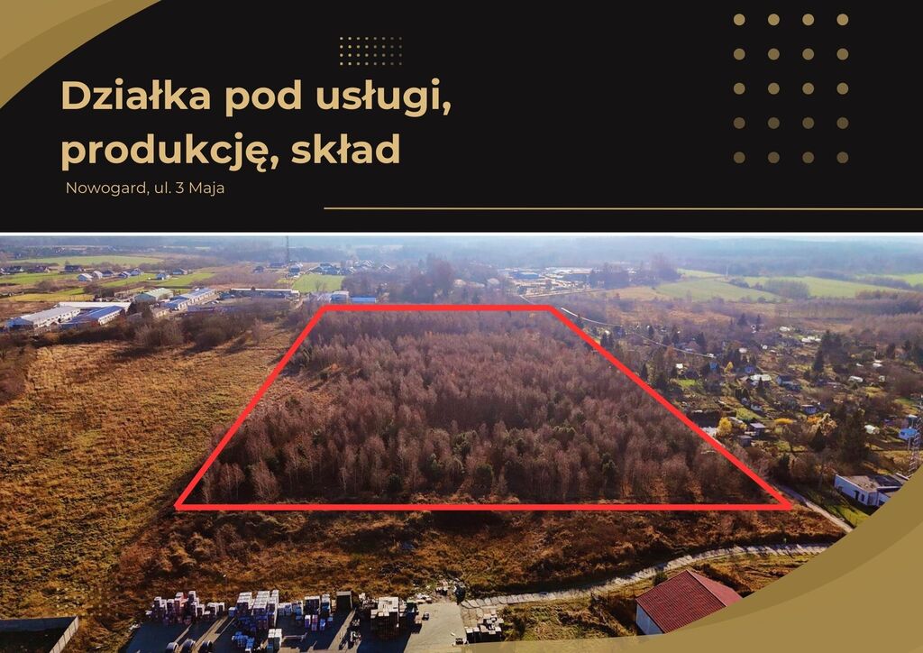 The subject of the offer is a plot of land with an area of 36,931 m2) located in the city of Nowogard at ul. May 3 (district road). Most important information: – there is no valid spatial development plan for the plot in question. – in accordance with the Study of the Conditions and Directions of Spatial Development of the Commune and Town of Nowogard, adopted by Resolution No. XLIV / 345/02 of June 27, 2002, the plot is intended for service, non-agricultural, industrial and storage development – May 21, 2008. in Goleniów approved the permanent exclusion of the property from agricultural production. The nearest neighborhood is currently service (car dealership, ORLEN petrol station) and commercial facilities (Mrówka, Armatura) Access from 3 Maja Street: – road easement, parallel to the plot border between the car showroom a Ant, type of surface – paving stones, – public dirt road. For the plot, the following was also issued: – technical conditions for connection to the ENEA power grid (connection power 80 kW, voltage 0.4 kV) – technical conditions for connection to the water and sewage network – opinion from the Greater Poland Distribution System Operator on the possibility of connecting to the gas network. The construction of the above-mentioned network up to the plot boundary is planned. The NET offer price does not include VAT, which must be added. It is possible to purchase a plot with a larger or smaller area – tailored to the owner’s needs, on individually agreed terms. The brokerage costs are covered entirely by the seller.