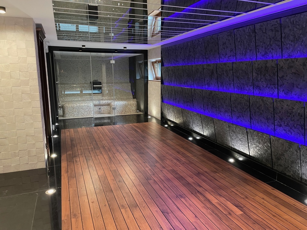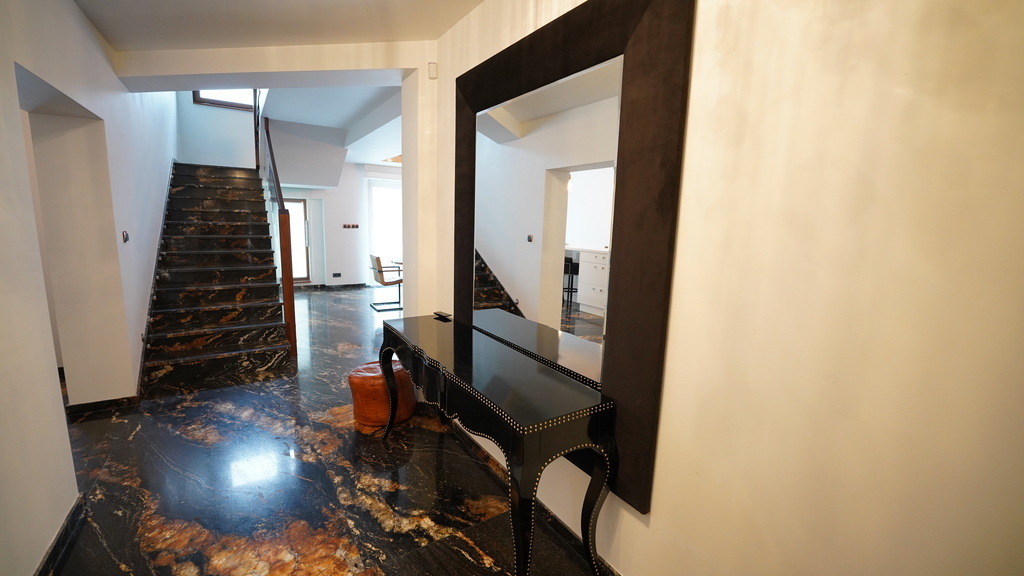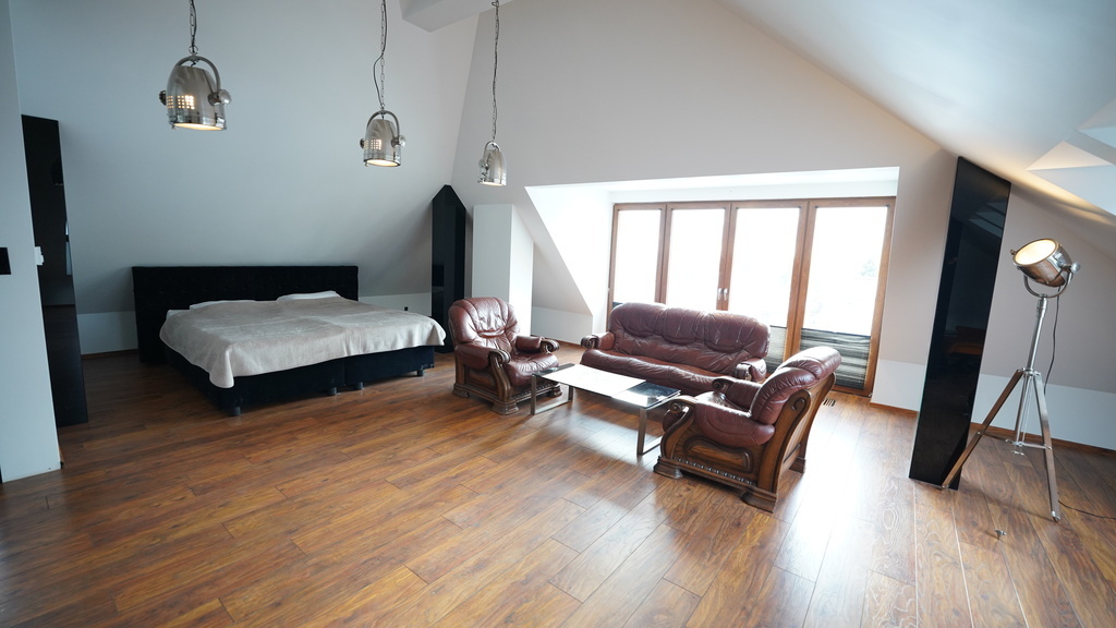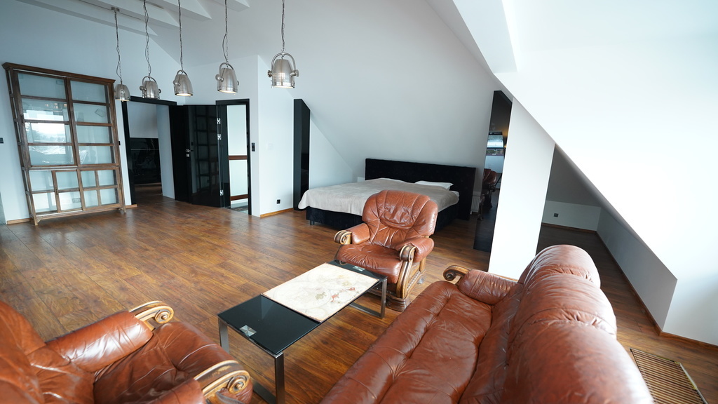 A beautiful house for sale with an area of 385 m2 and a plot of 1,500 m2. The villa is finished with the highest quality construction materials. The area of the property consists of: Basement: Home Spa, steam room, dry sauna, showers, relaxation area (33.07 m2), laundry room, drying room (12.52 m2), boiler room (20.39 m2), 2x utility room (1.93 m2) and (7.98 m2), hall (8.38 m2) Ground floor: Living room with a fireplace lined with granite (31.14 m2) and dining room (19.20 m2), kitchen (22.91 m2) with built-in furniture and household appliances, toilet (3 ,89m2), hall, vestibule, vestibule. From the living room there is access to a beautiful terrace, 1st floor: Bedroom (24.83 m2), room (21.97 m2) with wardrobe and bathroom (6.88 m2), bathroom with bathtub and two showers, Spanish tiles and terracotta (13.69 m2) Attic: room (78.50 m2), bathroom (18.99 m2), dressing room (20.77 m2) Building 385 m2 with a garage of 283 m2 with space for 8 cars and a bicycle area, gym (47 m2), music room with high-quality sound system and soundproofing (43 ,31m2), bathroom (5.45m2), hall (7.10m2). The house is equipped with air conditioning with heating and cooling functions, underfloor heating and a two-circuit gas furnace. Window joinery made of mahogany wood with anti-burglary glass and external roller blinds with time programming function. The house is equipped with an alarm, fire protection, internet, telephone, videophone and central vacuum cleaner installations. The floors are lined with Marble-Gres slabs, exotic boards in the bedrooms. There is a home theater system in the living room. ] An intelligent central heating management system has been installed in the house. Five heating zones, each of them can be adjusted separately using an application on the phone or a controller in each room. The installation of heating risers has been modernized. Pump groups were installed, thanks to which the heating became much more economical, because the furnace turns on only when it senses a temperature drop on the sensor and heats only the zone where the temperature dropped. The following items have been replaced: a condensing gas furnace, a 300-litre water tank. A beautiful garden with irrigation, numerous plantings, two automatically opening entrance gates, two illuminated parking lots paved with granite cubes. Great location, 10 minutes to the center of Szczecin, close to shops, schools, kindergartens. A house for a demanding client, finished with care and functional. I invite you to the presentation. Exclusivity.