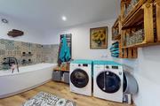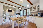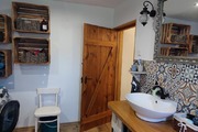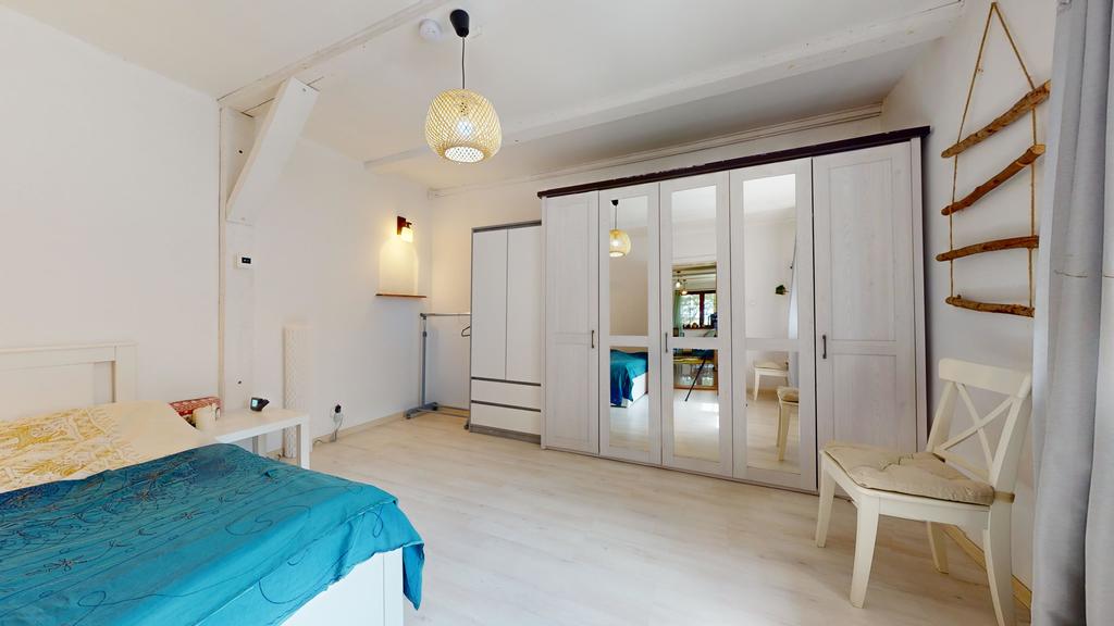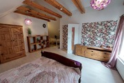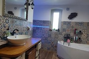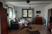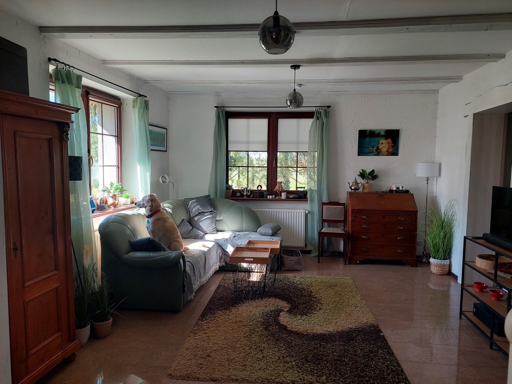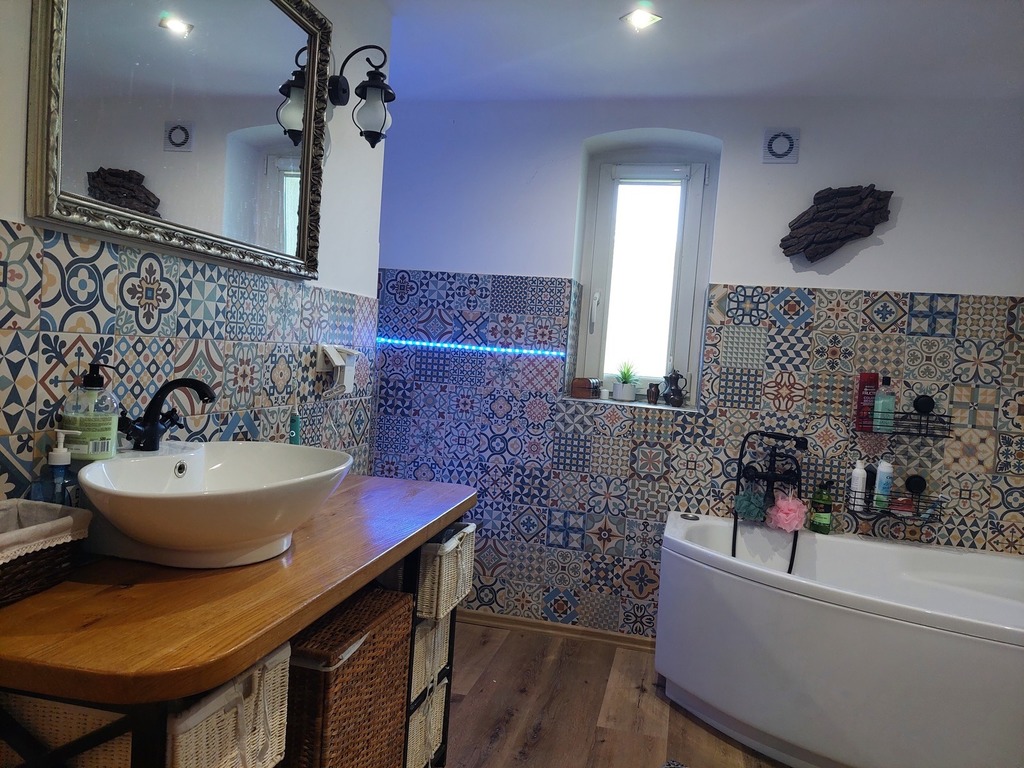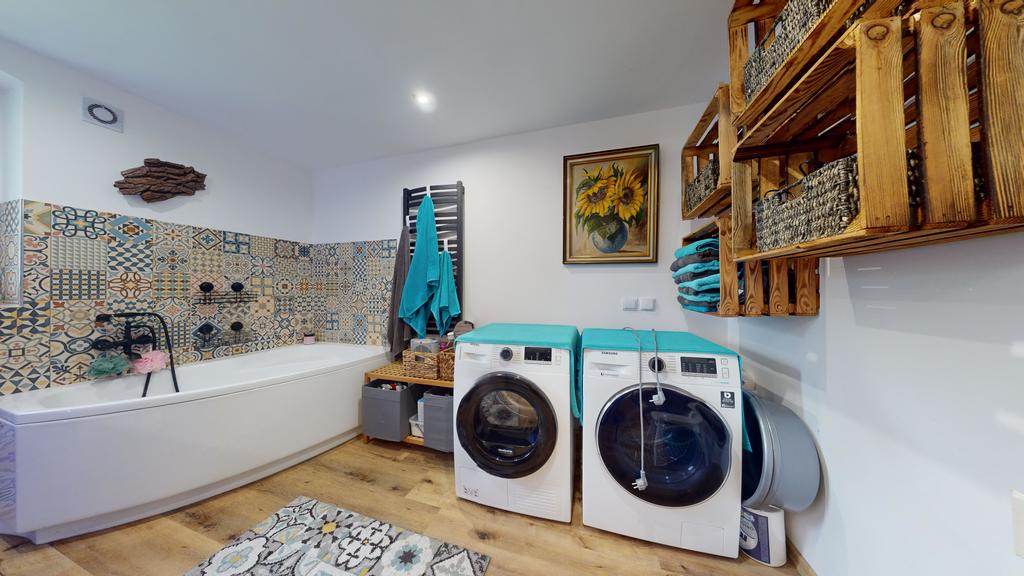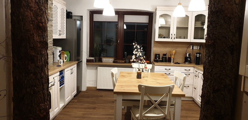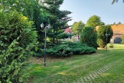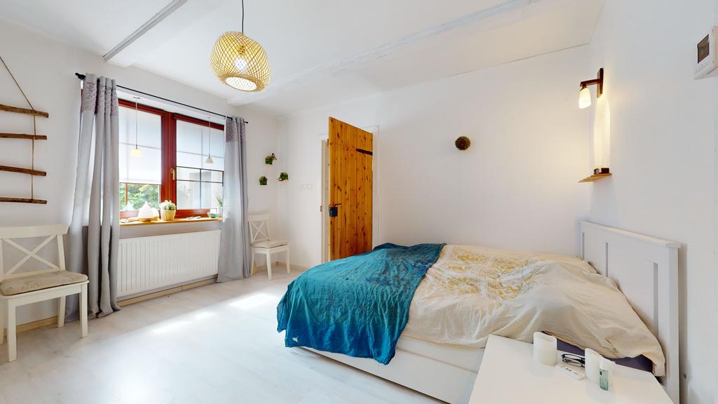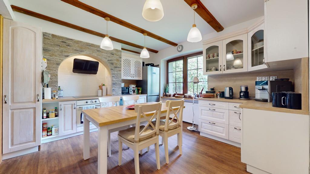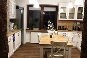 The house with an area of approx. 160 m2 has been completely renovated, thermal modernization has been carried out, new ceramic roof tiles, new windows, new heating installation, new interiors. The residential part consists of 4 rooms including a living room with a fireplace and a bedroom with a stove, a large, exclusive kitchen with new household appliances, two new bathrooms and a garage, a technical room. The property has been decorated in the Provencal style, high standard of finishing – photo.