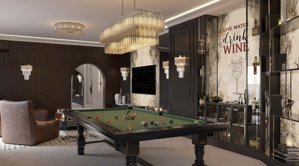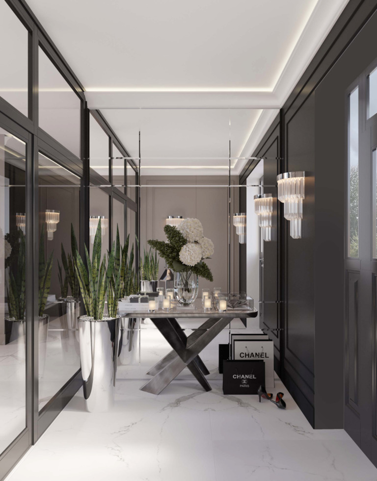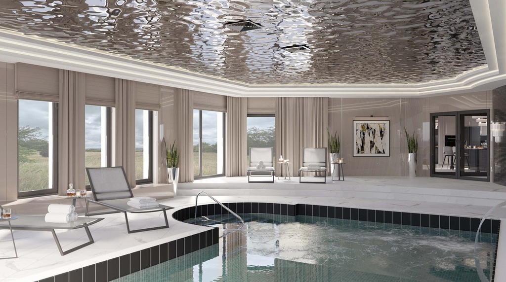 The residence is equipped with a private swimming pool, sauna, jacuzzi and exercise space. This zone is accessed from the dining room through the vestibule, which also leads