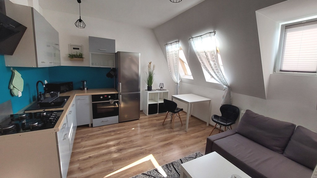 One of the nicest apartments for sale in the center of Szczecin. Top floor in a tenement house. Rayskiego Street, 100 m from Grunwaldzki Square (transport junction), renovated tenement house, inside parking for residents, which is priceless in the city conditions. Spacious, refreshed apartment. The room with a kitchenette seems much larger than it is. Stylish windows provide light but do not let in too much of it. Bathroom with shower, washing machine. Some of the equipment is newly purchased. Low rent, heating and hot water from a gas heater, which is regularly serviced. There are numerous pubs, cafes, walking areas and bicycle paths in the area. The proximity to a large transport hub and, at the same time, a quiet location make this apartment a very desirable offer for young people. I invite. Real Estate Agency's offer. Keys in the office