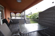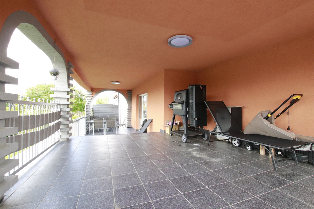 A spacious living room with a fireplace and access to the terrace, renovated last year, and the garden. A large, fully equipped family kitchen.