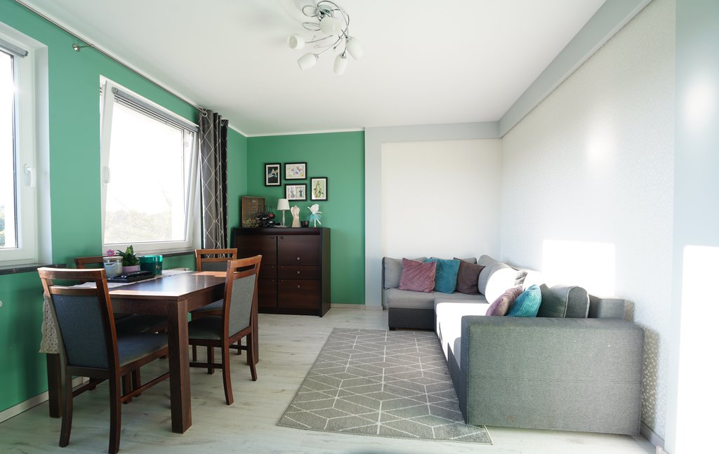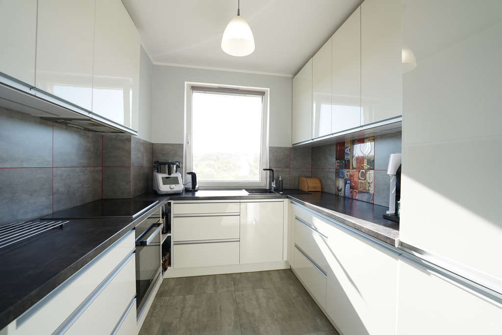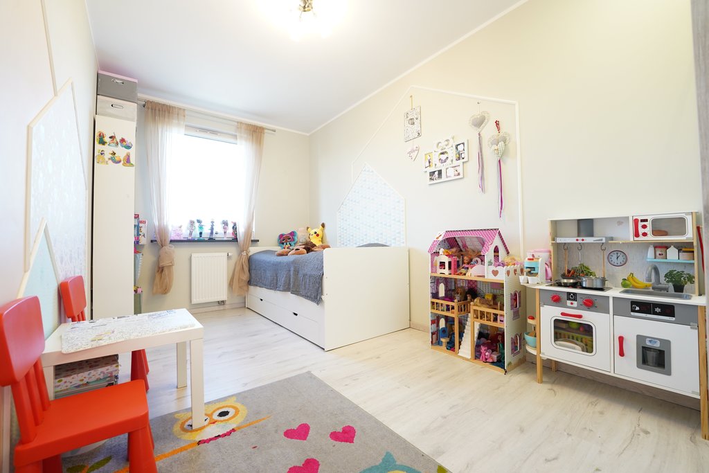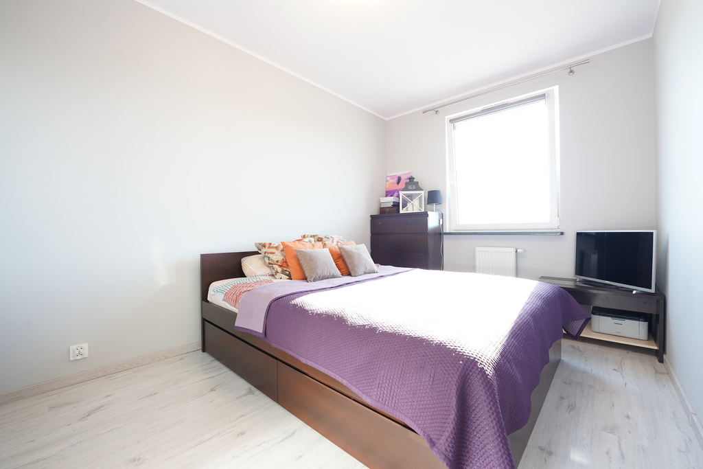 For sale a cozy three-room apartment with two parking spaces and a storage room in the Dąbrówki housing estate. The apartment is located on the 3rd floor of a 4-storey new building from 2016. The entire building is friendly to residents without architectural barriers with a modern elevator. The interior of the property is finished with high-quality materials that guarantee durability and comfort of use. The apartment in a modern style combines comfort, functionality and the latest trends. Room layout approx. 58.77m2: – living room approx. 20m2 – bedroom approx. 11.83m2 – room approx. 11.5m2 – bathroom approx. 5m2 – hall approx. 4.5m2 There are panels on the floors in the living room, room, bedroom and hallway. There are tiles in the kitchen and bathroom. Smooth walls and painted in subdued colors. All elements create a uniform whole. In the living room there is a corner sofa, TV cabinet, chest of drawers, dining table. The room has ceiling lighting and LED lighting above the sofa. The bedroom has a spacious built-in wardrobe with LED lighting and a bedroom bed. The children's room has a built-in wardrobe with LED lighting, a double bed and a shelf. The bathroom has a bathtub, sink, toilet and washing machine. The kitchen has modern custom-made furniture with household appliances. High-gloss furniture enlivens and enlarges the interior. Additionally, all elements are well-thought-out, practical and functional. In the hallway, there is a practical, spacious built-in wardrobe with LED lighting. Each window has roller blinds with awnings. The apartment includes two parking spaces in the above-ground car park, additionally payable PLN 40,000 and for a storage room, additionally payable PLN 10,000. (Obligatory purchase) The price of the property includes the kitchen and bathroom equipment. Other equipment is negotiable. The apartment is very sunny and economical to maintain. The average monthly rent payable to the manager is approx. PLN 667 (includes all fees and advances for hot and cold water, renovation fund, waste removal and heating). The heating refund is approx. 3 times the rent. The rent includes fees for four people living there. The property is ideal for a family or for rent. The area is friendly to families with children. There is a playground next to the property. The building is located in close proximity to Galeria Północ, approx. 4 minutes by car, Biedronka, Lewiatan store, Netto. The football pitch is located approx. 3 minutes away. Access to the city center approx. 20 minutes, Police approx. 15 minutes, Folwark Podkowa approx. 6 minutes, Marina Gocław approx. 4 minutes I invite you to the presentation