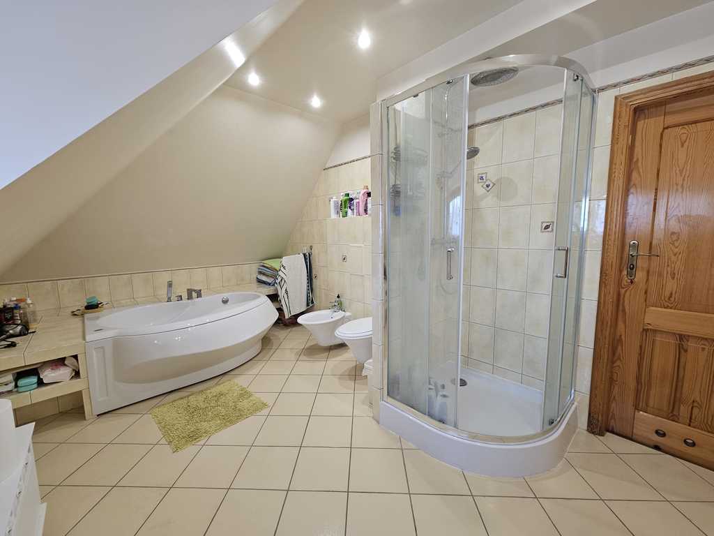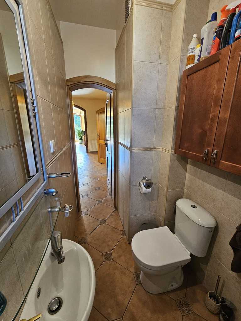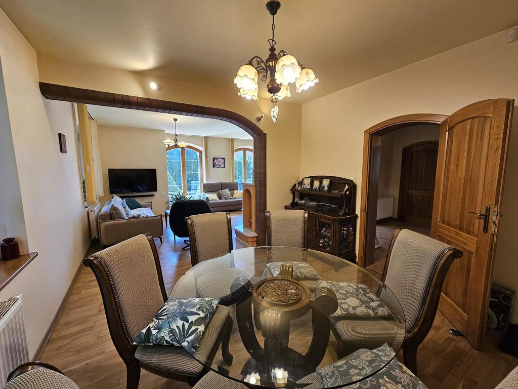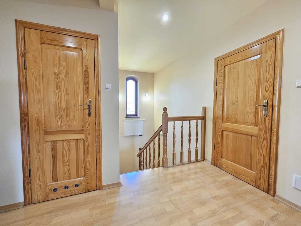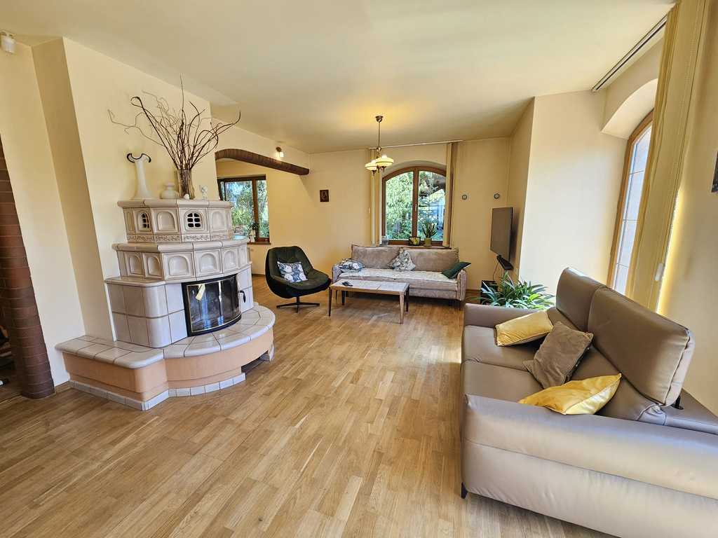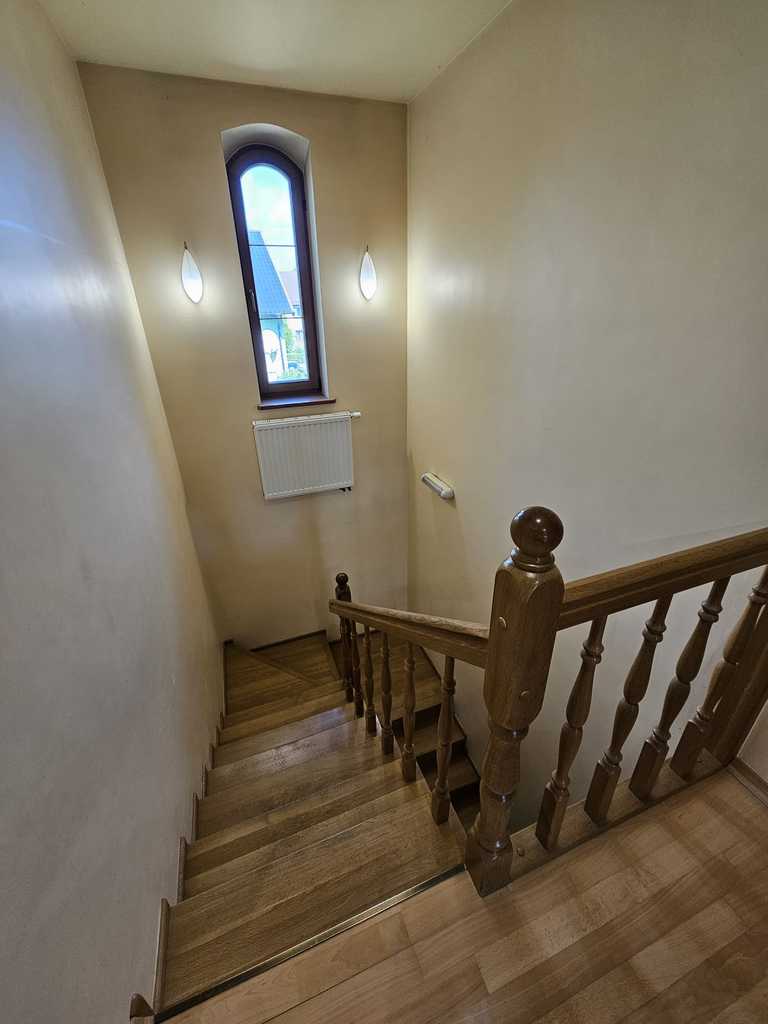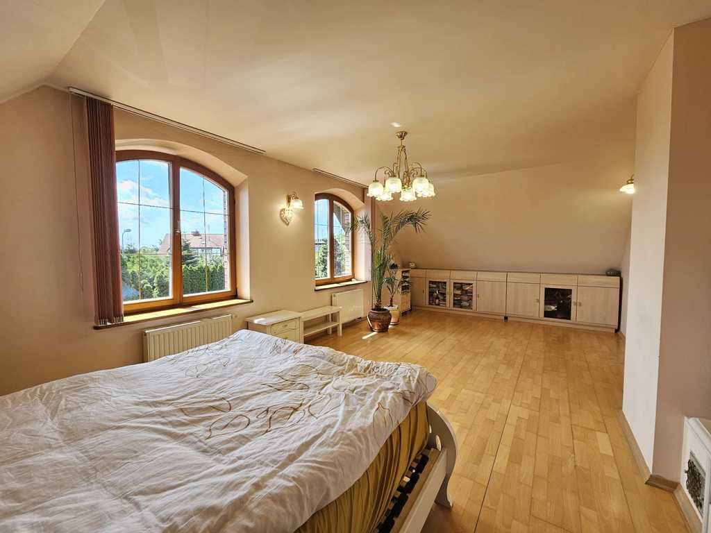 Single-storey house with usable attic (fully basemented) 8-room with a total area of 350m2, usable area of approx. 300.5m2 located on a plot of 693m2 from 2003 in a quiet place in Gryfino, Górny Taras. The house is well-kept and inhabited to a very good standard, it can function as a 2-generation house. Access to the property by a paved asphalt road. The building is insulated with mineral wool in a layered wall with ceilings and roof. The property consists of 4 levels: In the basement there is: a 27m2 garage, a corridor, a pantry, a boiler room, a laundry room and three utility rooms that can function as rooms with a kitchen. This level has an independent entrance from the outside. Concrete floors covered with terracotta in all rooms. Wooden pine door joinery. Here we have a two-function gas boiler with a water tank and a central vacuum cleaner installation. Large garage with an automatically controlled entrance gate. The ground floor consists of: a vestibule, hall, large living room connected to the dining room, room, separate bright kitchen, bathroom with toilet. Kitchen with a window furnished with furniture equipped with household appliances. In the living room on the floor there is a Barlinek board, a magnificent fireplace with air distribution. Numerous arches in the passages between rooms and in the windows add charm, which is a visual effect. Beech door joinery. Wooden oak windows and window sills. From the living room there is an exit to a large terrace. On the first floor there is: a corridor, 3 rooms (one with an exit to the balcony), a large bathroom, a separate toilet and a wardrobe. Wooden pine door joinery. From the corridor we can enter the unused attic. Stairs leading to the basement are covered with terracotta, while those leading to the first floor are covered with beech wooden steps. The building has an alarm system. The garden is nicely landscaped, constantly maintained with numerous impressive plants. In addition to the garage, up to 5 cars can be parked on the property. The entrance gate and the fence at the front are made of steel spans with installed automation. An ideal offer for a large or multi-generational family. The house could function as a 2-generation house, partly even for office activities in the basement. Zalando is only about 10 km from Gryfino. Convenient and quick access to Szczecin (no traffic jams or traffic lights), only 14 km from the Rosówek border crossing, 3 km from the Mescherin border crossing.