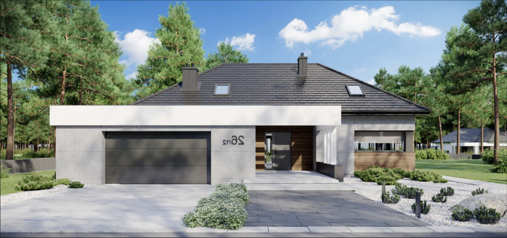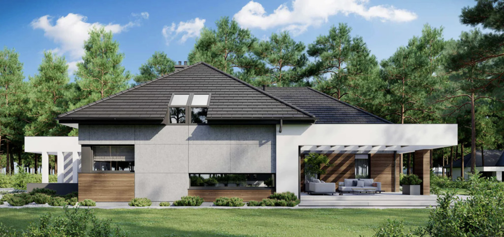 Due to the location of the plot and the topography of the terrain, the house will be adjacent to a field and a forest on the south and east sides.