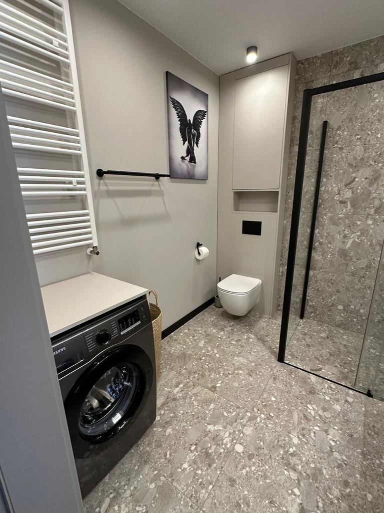 For rent an apartment in a newly built block on Pogodno. The apartment is made in a modern style, freshly finished, furnished. The property has a living room with a kitchenette equipped with the most necessary things – fridge, oven, dishwasher. The bedroom has a double bed and a spacious wardrobe. The bathroom has a large shower, toilet, washing machine, sink and mirror. The apartment has a balcony with an area of 8.33 m2. The doors to the apartment are anti-burglary. The apartment includes a parking space in the underground garage at a price of PLN 300 / month. Apartment in a quiet and peaceful area.