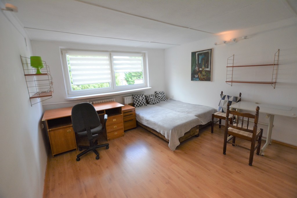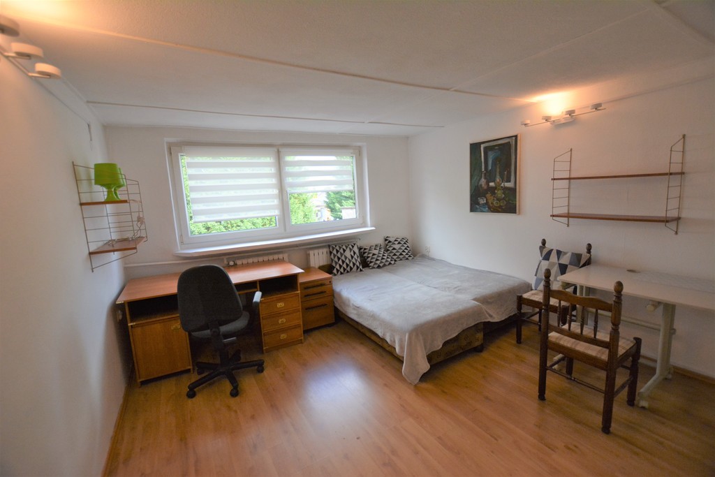 Good, two rooms, 39 m2, second floor in a single-family house. The premises are equipped with furniture, beds, wardrobe, chairs. The furniture is visible in the photos. Bathroom with shower cabin, toilet, sink, washing machine. Terracotta on the floor, walls in tiles. Layout rooms. Parquet floor, PVC windows. Smooth and painted walls. Kitchen equipped with furniture, cutlery, household appliances. Rent PLN 2000.00 plus an advance payment for utilities PLN 500. Nearby public transport stops, green areas, primary school, shops. Good access to the center. Deposit of PLN 3000.00 required. It is not possible to keep animals in the house. Occasional rental, minimum 1 year!!! Possibility to park a car in front of the house. Quiet place, well connected to the center.