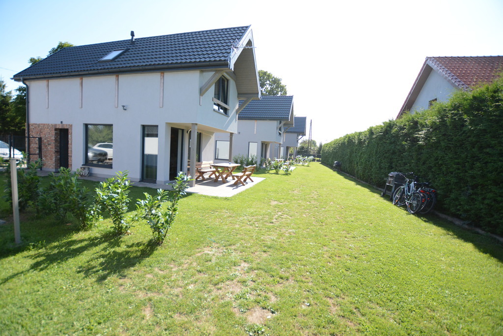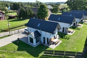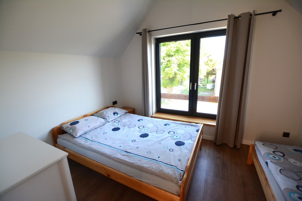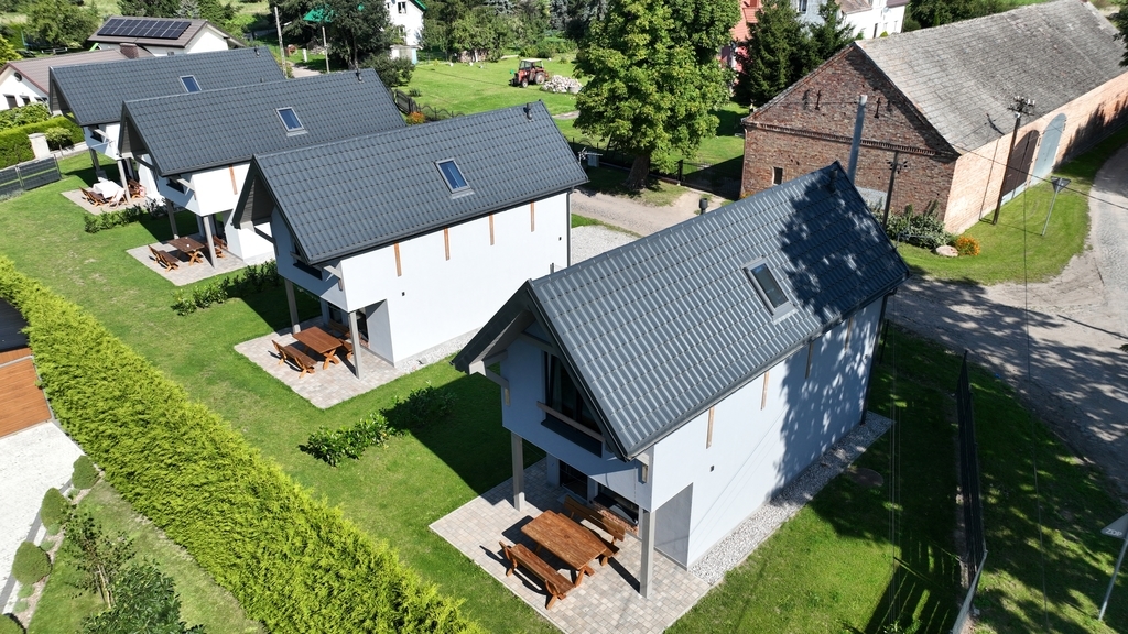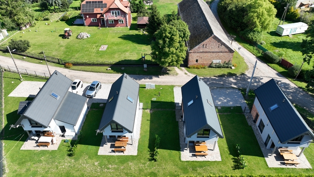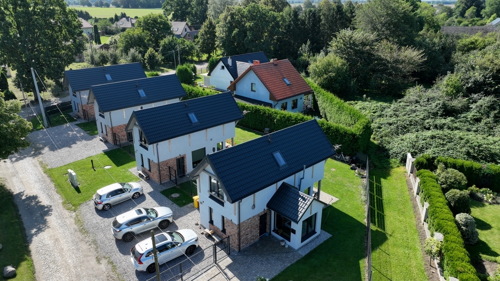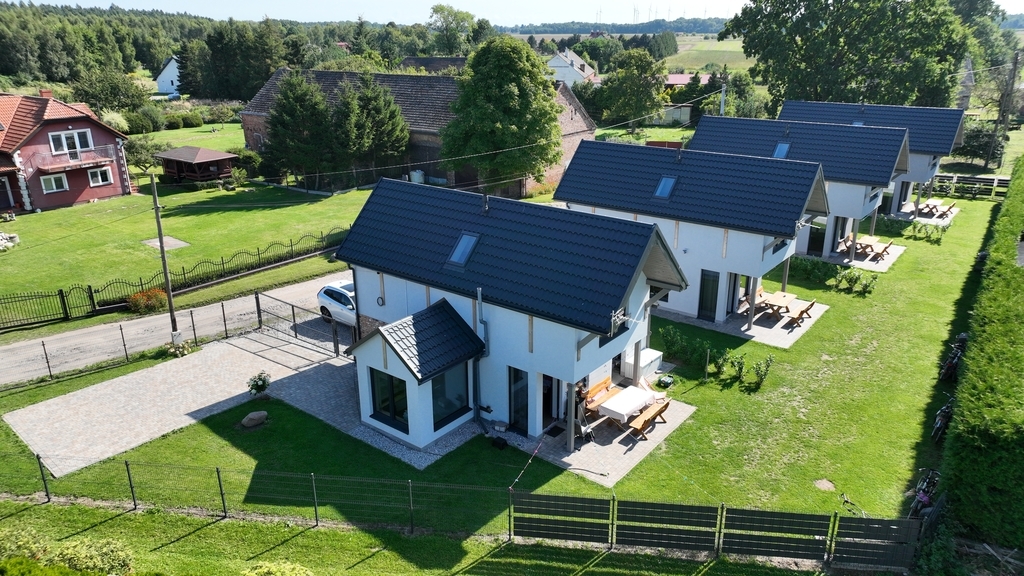 For sale a property located in the picturesque and quiet village of Radawka The investment consists of 3 detached houses with a usable area of 57.57m2 and one house with an area of 63.57m2 (living room enlarged ground floor by 6m2 – bay window) The usable area of one house with an area of 57.57m2 consists of: ground floor: – living room with an area of 21.5m2 (one house plus 6m2) with exit to the terrace of 15m2 – kitchen of 3.84m2 – bathroom with toilet of 2.66m2 first floor: – room of 9.6m2 – room of 9.6m2 – bathroom with toilet of 3.7m2 – corridor A well-prosperous guest house with a very high rate of return for the future buyer. All houses finished in the same style. Amenities and equipment and materials of houses: – houses sold with all equipment and furniture visible in the photos – kitchen furniture in permanent construction included among others (dishwasher, fridge, induction hob, kettle) – placed on a foundation slab – house construction – wooden technology, between beams 20 cm wool + 10 cm wool crosswise + 10 cm polystyrene (for those interested there is extensive documentation from the construction). – two Ariston electric boilers (60 and 80 liters) – fiber optic internet. – internal beech window sills, wider for sitting – on the facade demolition brick, cut – PVC windows, triple-glazed – terrace paved with paving stones. – direct access to the municipal road – parking space in front of the house. The facility has a permanent customer base, and very good reviews on the booking platform. We can get to the beach by bike in 6-7 minutes. Distance to important places: Beach in Dziwnówek – 1.6 km, Wild beach in Radawka – 2 km, Beach in Łukęcin – 2.5 km. In the vicinity of the house there are excellent conditions for trekking and fishing. Exclusive offer. I invite you to the presentation.