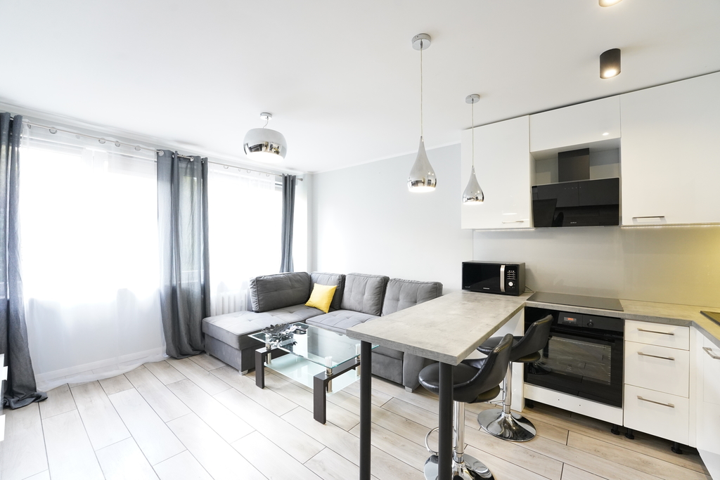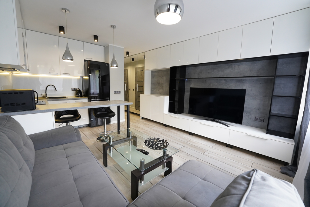 For rent a sunny studio apartment located in close proximity to Hanza Tower. The property is located on the ground floor of a 10-story skyscraper. The usable area of approx. 30 m2 consists of: – spacious living room with kitchenette – bathroom – hallway – wardrobe with washing machine The apartment is renovated, fully equipped and ready to move in. The built-in furniture is very well thought out and functional. The apartment has anti-burglary doors that ensure silence and safety. The administrative rent of the apartment is approx. PLN 500 (the rent includes advances for cold and hot water, city heating, renovation fund, waste removal, cleaning, building administration). The apartment is very warm due to its location in relation to other apartments. Additionally, electricity is paid according to consumption. I invite you to the presentations
