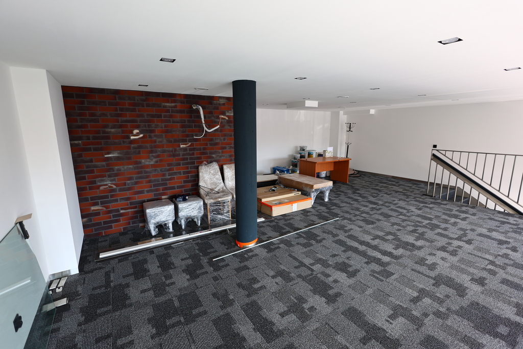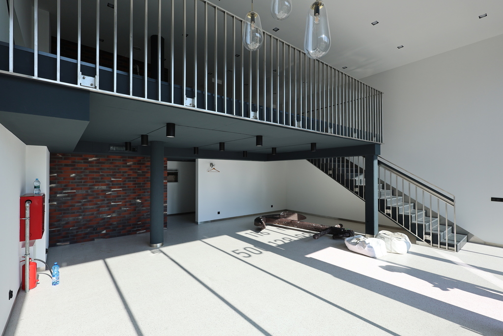 The property offers a modern, open space with a high ceiling, which creates a wide range of arrangement possibilities. The main hall with an area of approx. 60 m² is ideal for conducting commercial, office or service activities. An additional advantage is the mezzanine with an area of 46 m², which can be used as an office, warehouse or additional usable space.