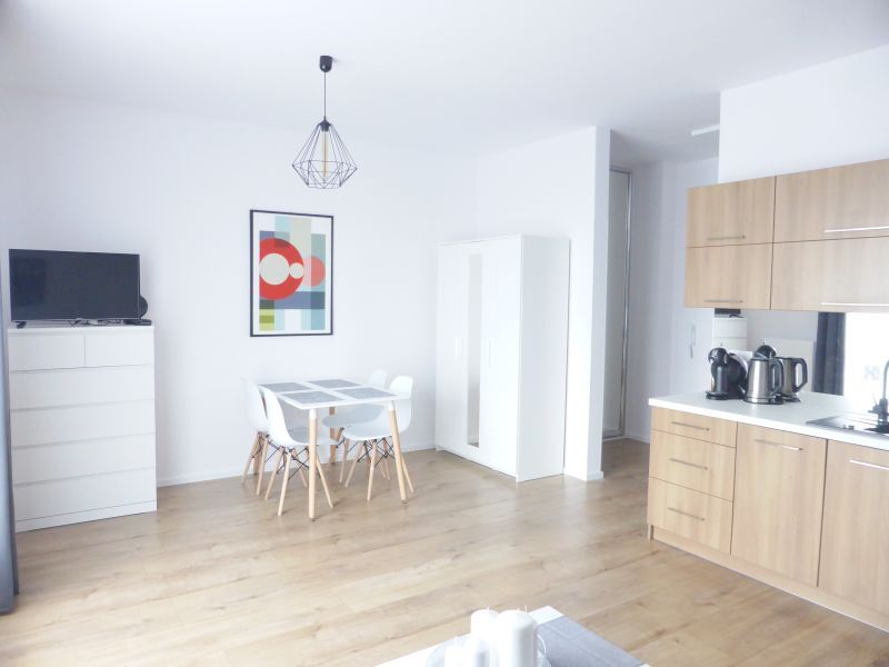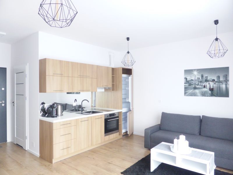 A studio apartment for rent, located on the 4th floor of an apartment block with an elevator. On an area of approx. 29 m2 there is: approx. 22 m2 living room with kitchenette, approx. 3 m2 bathroom and approx. 4 m2 hall. The apartment is fully equipped. The kitchen has household appliances, including a dishwasher and a coffee machine. Washing machine in the bathroom. In the hall there is a large 2-door wardrobe. Fees: rent approx. PLN 360, additionally payable electricity. Despite the small size, the apartment has been equipped and adapted to ensure comfortable stay in it. I recommend and invite you to the presentation.