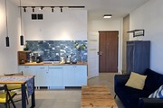 The apartment is finished with high-quality materials and furniture. Italian tiles on the floor and throughout the bathroom, custom-made kitchen units.