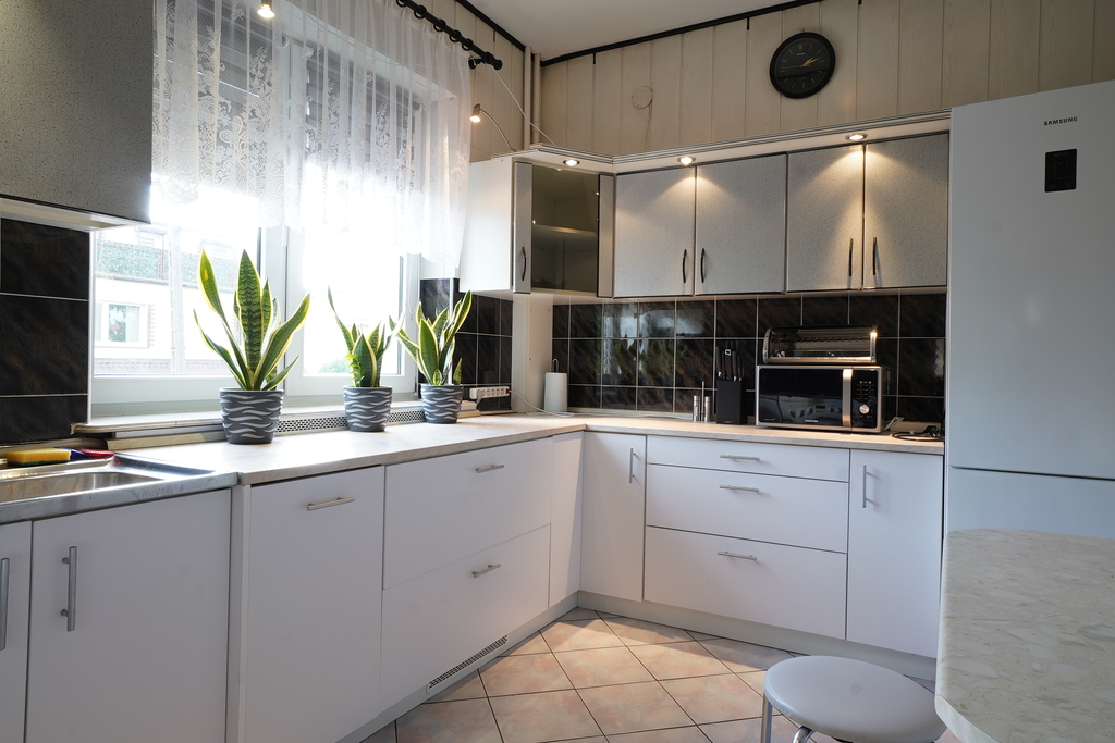 For rent a house with a usable area of 110 m2 consisting of a living room, 4 bedrooms, kitchen, bathroom and separate toilet, as well as a plot of 550m2. The house has a basement. Garage in the basement. The property has gas heating and hot water from a gas furnace. The building is insulated, PVC windows. Quiet and peaceful area. Quick access to the center by bus no. 57 or 87. Nearby grocery stores, medical offices, school, Myway fitness gym. With long-term cooperation, the property can be adapted to the needs of the Tenant. Available immediately.