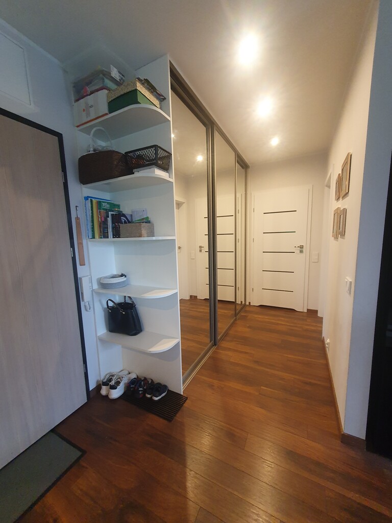 In the hall there is a large sliding wardrobe with built-in commander-type mirrors.