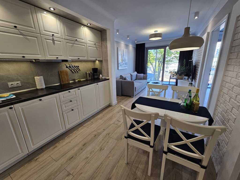 We offer you a 2-room, luxurious, tastefully furnished apartment in Międzyzdroje with a side view of the sea, just 100m from the beach. The apartment was put into use in 2020, it has been fully furnished and fully equipped. The apartment building in which it is located is a modern building without barriers, equipped with two elevators adapted for the disabled, a porter's lodge, a garage and commercial and service premises on the ground floor. The apartment on the north-east side on the 2nd floor consists of a living room with a kitchenette (new development with household appliances: fridge-freezer, microwave, electric hob, dishwasher, washing machine), a bedroom and a bathroom with a toilet with a bidet function and a shower. From the living room there is an exit to a large balcony of 7.5m2. The premises are finished using high-quality materials. What is worth paying attention to? Here are the main advantages of the apartment: * modern, several-year-old building without barriers * high standard of finishing of the premises * functional layout of the rooms * modern solutions used, such as remote door opening, smoke detectors, USB sockets, etc. * a large amount of decorative lighting (spot and LED) * spacious large aluminum tilt and turn windows * large balcony with the possibility of exiting from both rooms * side view of the sea and one of the main walking streets * underfloor heating, no radiators in the rooms * low maintenance costs, monthly rent at the level of approx. PLN 450 * full furniture and equipment included in the price of the apartment * proximity to the sea and the Promenade of Stars * established brand among visiting guests, including foreign ones The offer should be seen as a year-round apartment, where you can live, with low maintenance costs. But especially, as a well-prosperous investment project, with an established brand, enjoying very good opinions on booking.com. Excellent location and a convenient place to relax, both for a couple and a family with children, close to both the sea and the Center of Międzyzdroje. The wonderful location of the facility (just 100 meters from the sea and a beautiful, wide and sandy beach) makes resting here a pure pleasure, bordering on true luxury. The owners took care of every detail, making this place truly exceptional and unique. We invite you!