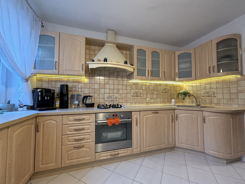-Separate kitchen (9.43 m²) – very bright, fully equipped with household appliances, as well as a part intended for eating meals. This space is conducive to shared moments of cooking.
