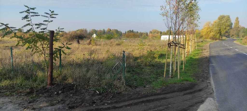 An asphalt road leads to the plot.