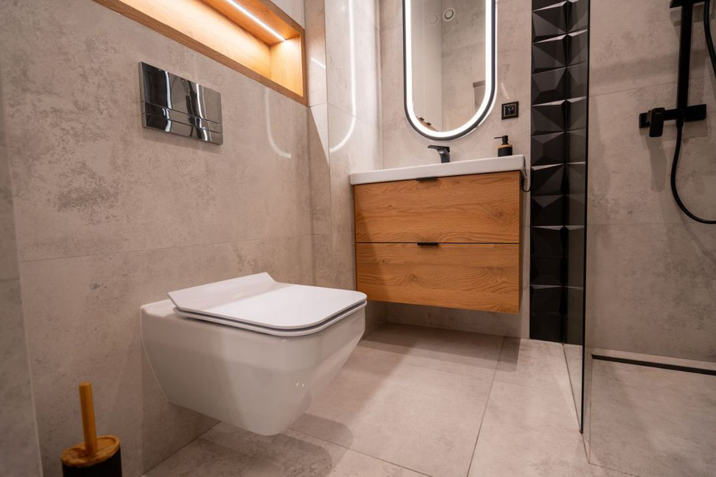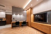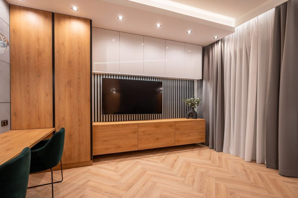 Design and quality of finish: The apartment was designed by an excellent interior designer with attention to every detail. The use of the highest quality materials and well-thought-out solutions make the space not only aesthetic, but also very functional. All furniture is made to measure, which maximizes the use of space.