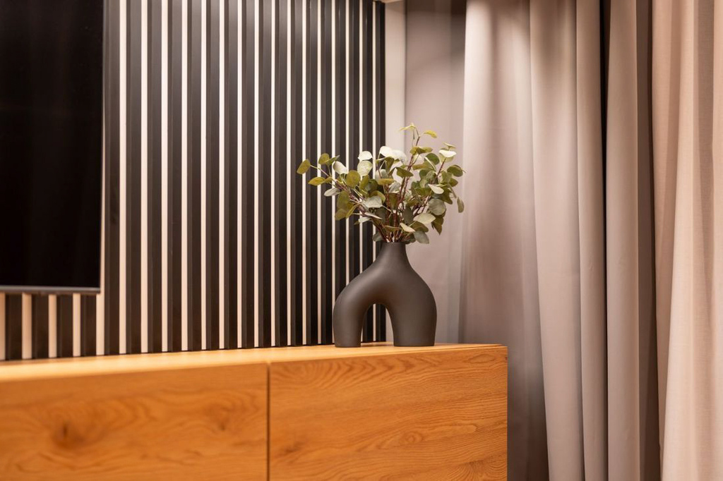 High-quality equipment: The apartment is equipped with RTV and household appliances from renowned manufacturers, including a 65-inch OLED TV by LG. The whole thing is complemented by air conditioning, which ensures comfort all year round.