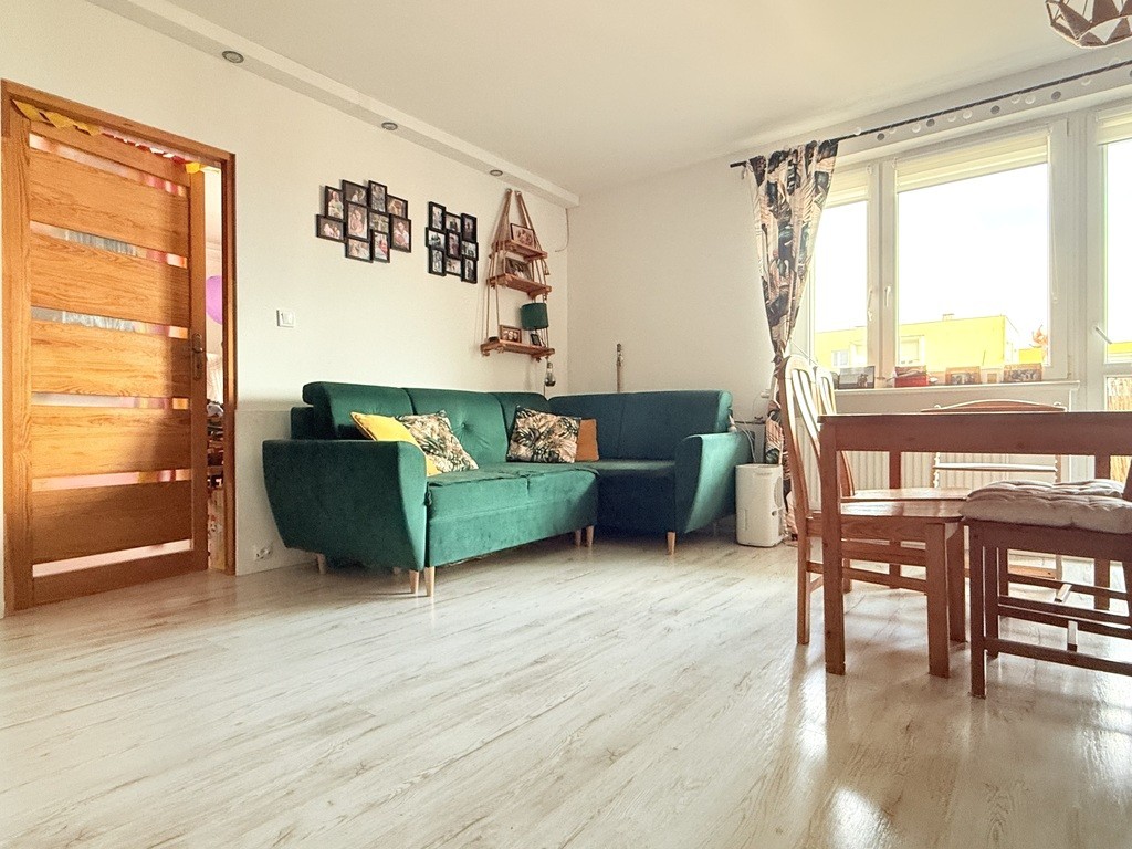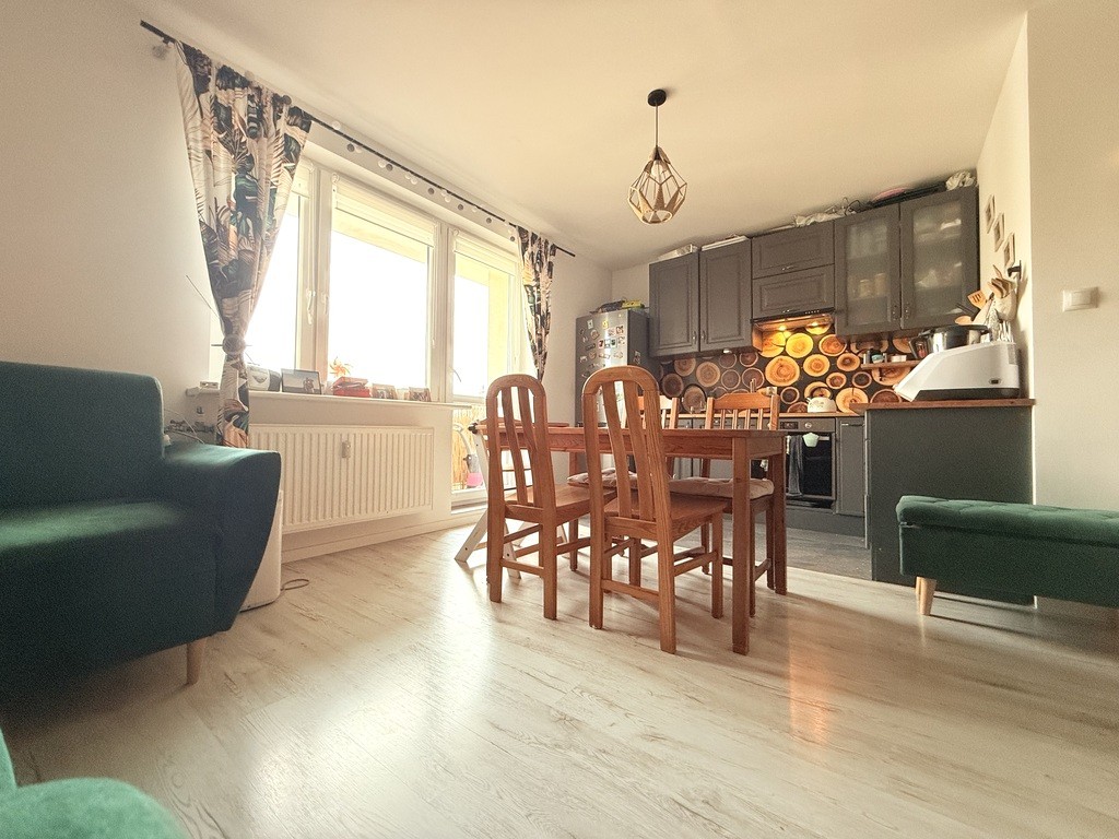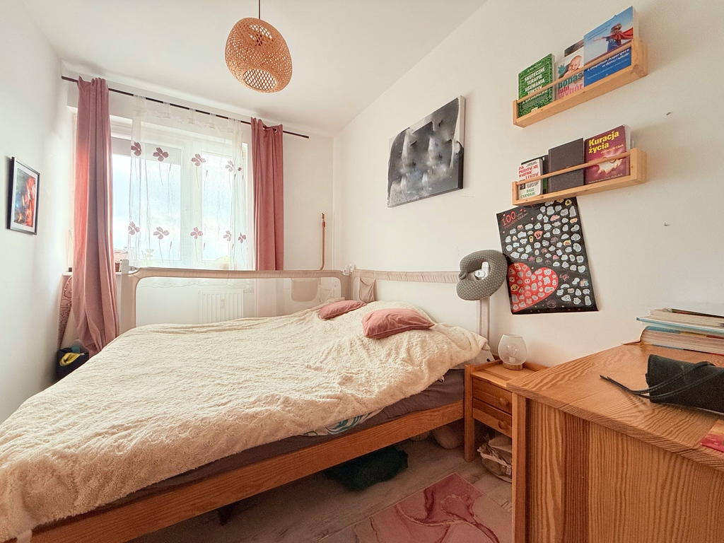 Large 3-room, cooperatively owned apartment on the border of Świerczew and Pogodna. The property is located on the 11th floor of a large-panel building. The area of 62.39 m2 consists of: – Living room with kitchenette and access to one of the two balconies, – Children's room with access to the second balcony, – Bedroom, – Bathroom with a large window, corner bathtub and walk-in shower – Storage room / wardrobe – Hallway. The apartment includes a basement The apartment underwent a major renovation in 2020 (electricity, water and sewage connections) Rent – PLN 910 additionally payable electricity The building is insulated, the roof has been replaced, which is reflected in the heating refunds. The elevators are planned to be replaced in the near future. The area is family-friendly, all amenities are nearby – kindergartens, schools, swimming pool. Nearby Lidl, Biedronka stores, etc. A very good public transport network allows for free movement. The apartment has a freshly created energy performance certificate, the parameters of which are very good! Additional possibility of renting a detached garage for PLN 150 per month. I cordially invite you to personally verify the offer. Possibility of purchase by people from outside the EU!