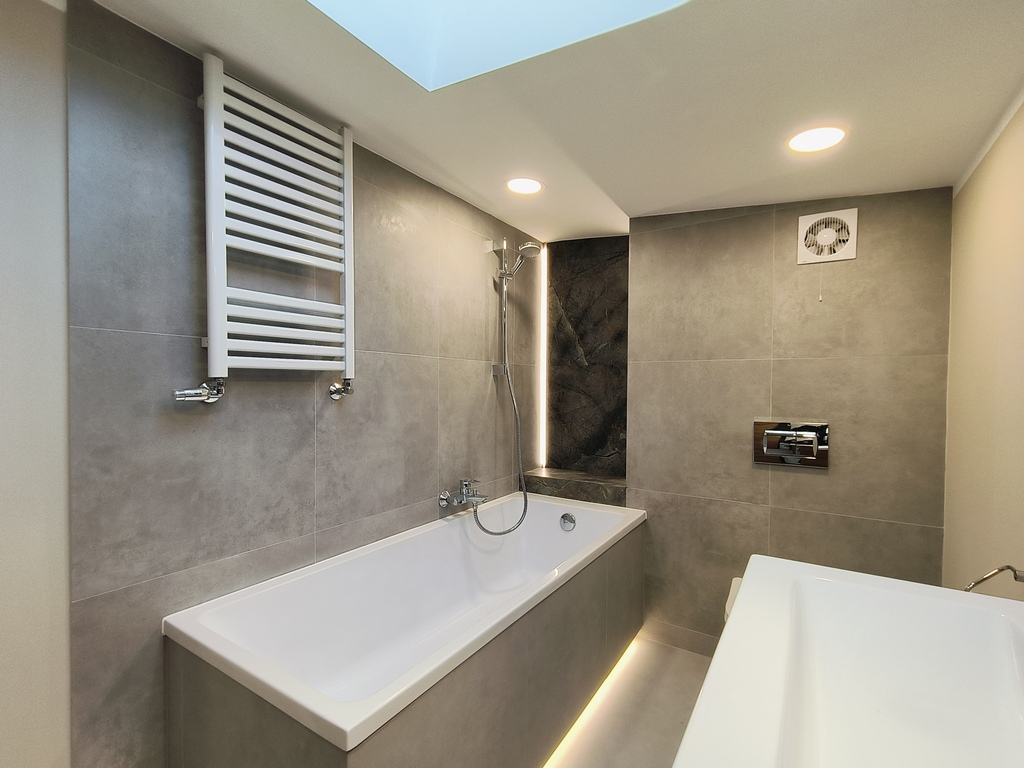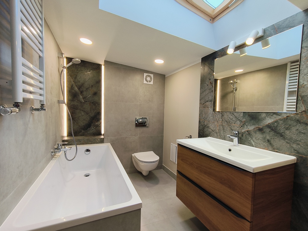 – bathroom (5.40 m2) with a large bathtub and toilet,