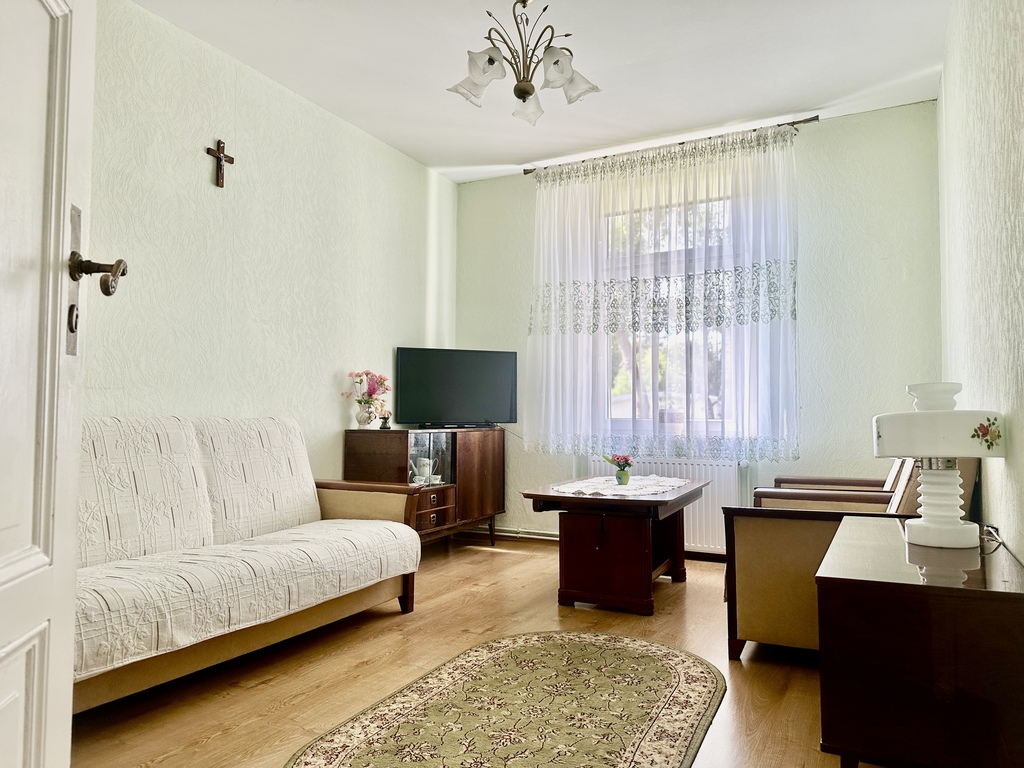 For sale: a three-room apartment with an area of 78 m2 with three rooms. Area 78 m2: – three rooms, – hall, – kitchen with dining room, – separate bathroom, – separate toilet. The apartment includes a large 18 m2 basement. Low rent PLN 320 + PLN 150 renovation fund. Heating and hot water from a gas furnace. The premises are assigned a share of the plot of 119 m2 on which the property is located. I recommend it due to the location and the possibility of individual arrangement. I cordially invite you to the presentations