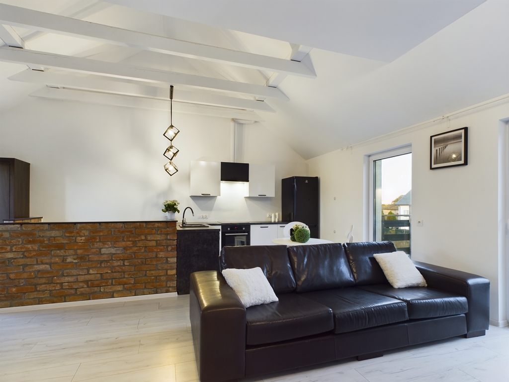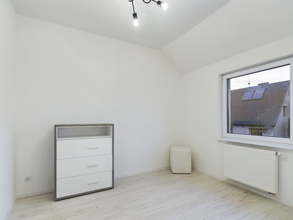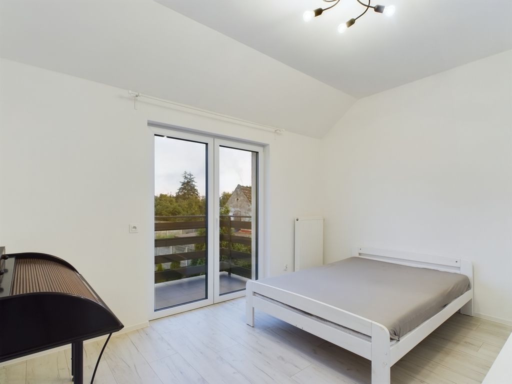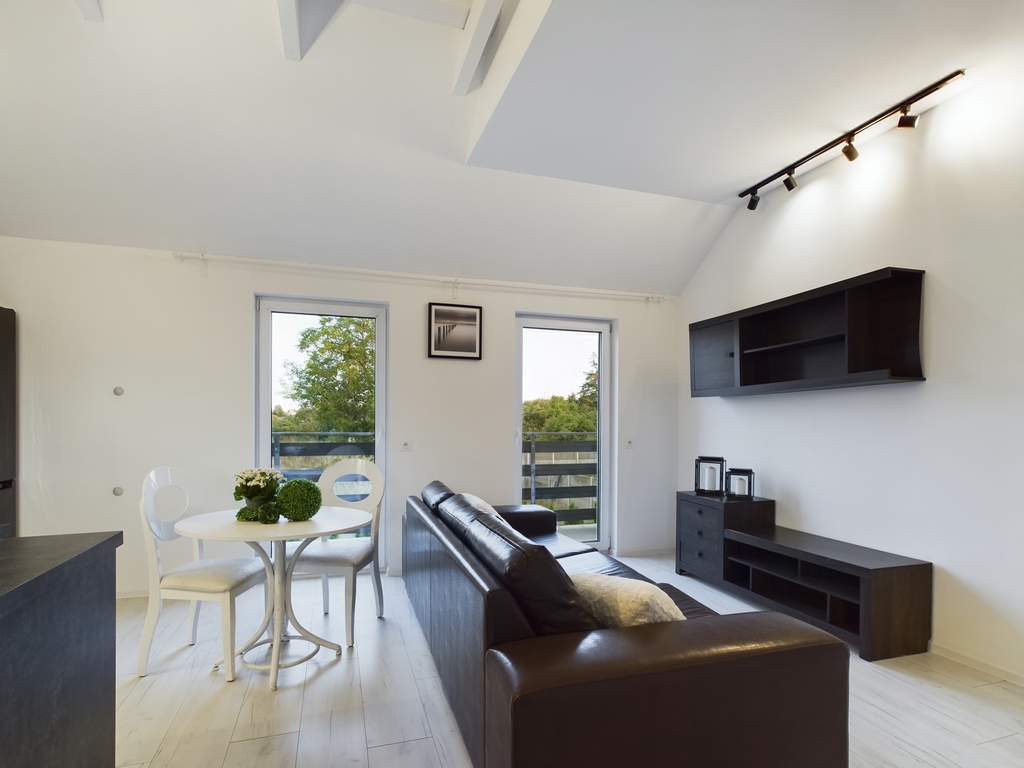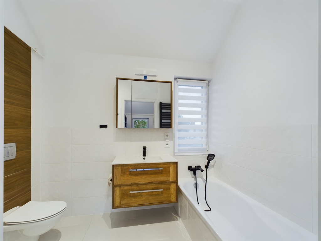 We invite you to familiarize yourself with the offer of a beautiful apartment with an area of 61.44 m2 with two balconies and a parking space for two cars, located in Police Jasienica. Layout of the rooms The apartment is accessed by stairs from the corridor on the ground floor. On the first floor there are: – a spacious living room in the form of an open space with an open kitchen and access to two balconies – on two sides of the apartment, – a bright bathroom with a bathtub, washbasin and toilet and a ladder radiator – a bedroom with access to the balcony – a room Additionally, an unused attic for storing things. Standard of finish and equipment The apartment is in perfect condition – it does not require any financial outlays. Elegantly and stylishly finished. Equipped and ready to move in. In the kitchen, built-in furniture with household appliances: dishwasher, fridge-freezer, hood, oven, induction hob. In the living room, a seating set and cabinets. In the bedroom, a large bed, desk and chests of drawers. In the bathroom, a washing machine. Triple-glazed windows with electric blinds – controlled by remote control. Underfloor heating in the living room with kitchen, bathroom and hallway. Radiators in the bedrooms. Media and fees Heating and hot water from a gas condensing furnace. RENT-FREE apartment! Electricity, gas and water according to consumption. Very low fees due to the high standard of insulation and windows. Additionally, garbage collection. Internet and TV on your own. Building The property is located on the first floor in a single-family semi-detached two-apartment house – built of Porotherm in 2021. The property is fenced and located in an intimate place. The apartment includes two parking spaces – entry through a gate opened by remote control. At the back of the building a garden of approx. 100 m2 for your own use. Location In the immediate vicinity of a school, kindergarten, clinic, pharmacy, shops. Communication – city bus. To the center of Police approx. 9 km, to the center of Szczecin 21 km. This beautiful apartment is waiting for its new owner. Don't hesitate and schedule a presentation. I sincerely recommend and invite you!