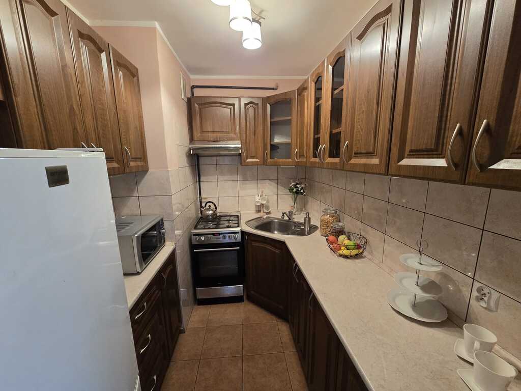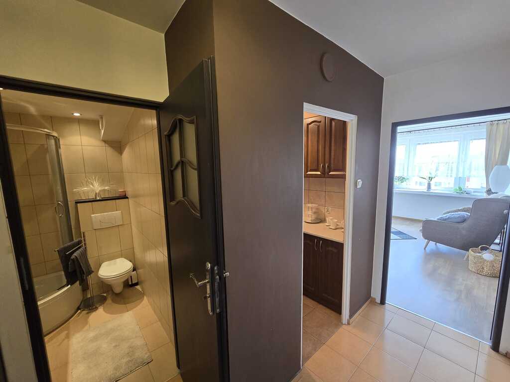 An attractive studio apartment with a separate kitchen for sale, located on the 10th floor of the building, in an excellent location near the Manhattan market in Niebuszew. COOPERATIVE OWNERSHIP RIGHT TO THE PREMISES – POSSIBILITY OF PURCHASE BY PERSONS OUTSIDE THE EUROPEAN UNION. ПРАВО КООПЕРАТИВНОЇ ВЛАСНОСТІ НА ПРИМІЩЕННЯ – МЖЛИВІСТЬ КУПІВЛІ О СОБАМИ ЗА МЕЖАМИ ЄВРОПЕЙСЬКОГО СОЮЗУ. PRAVO KOOPERATYVNOYI VLASNOSTI ON PRYMISHCHENNYA – MOZHLYVISTʹ KUPIVLI PERSON ZA MEZHAMY YEVROPEYSʹKOHO SOYUZU. The apartment has an area of 29 m2 and consists of: – spacious room (16.5 m2), – separate kitchen (4.8 m2), – bathroom with toilet (2.7 m2), – hall (5 m2). The room is very well lit with daylight (windows run along the entire width of one wall), the floor has high-abrasion panels, the walls and ceilings are smooth and painted. Separate kitchen equipped with built-in furniture, gas stove with oven, fridge with freezer, microwave, hood. There is terracotta on the floor, and an apron made of tiles between the cabinets. Lots of cabinets and storage space, plenty of worktops. A bathroom with modern tiles and terracotta, with a shower and toilet, and a washing machine. In the hall there is a very large built-in wardrobe with mirrors – it is included in the price. PVC windows. Interior doors replaced with new ones. The apartment is accessed by an anti-burglary door with additional security measures. Basement with an area of approx. 2 m2. Heating and hot water – municipal network. Additional costs include: rent to the cooperative – PLN 266 (includes heating, water, garbage and renovation funds), electricity and gas (only for the stove) – according to consumption. Internet and cable TV available. The apartment is very warm, every year the heating costs are reimbursed as much as two rents. The staircase is clean and very well-kept. There are two modern elevators installed in the building. Very good location, with very good and quick access to the center via many public transport lines. Close to Kasprowicz Park and walking and recreational areas. Full infrastructure nearby: chain stores, market, nursery, kindergarten, school. Good access to many universities. The apartment does not require any financial outlays, a major renovation was carried out a few years ago and the electrical installation was replaced with a copper one. It is possible to leave the furniture in the buyer's room (wardrobe, 2 chests of drawers, sofa with sleeping function, fold-out coffee table). Purchasing this apartment is an excellent investment for rent.