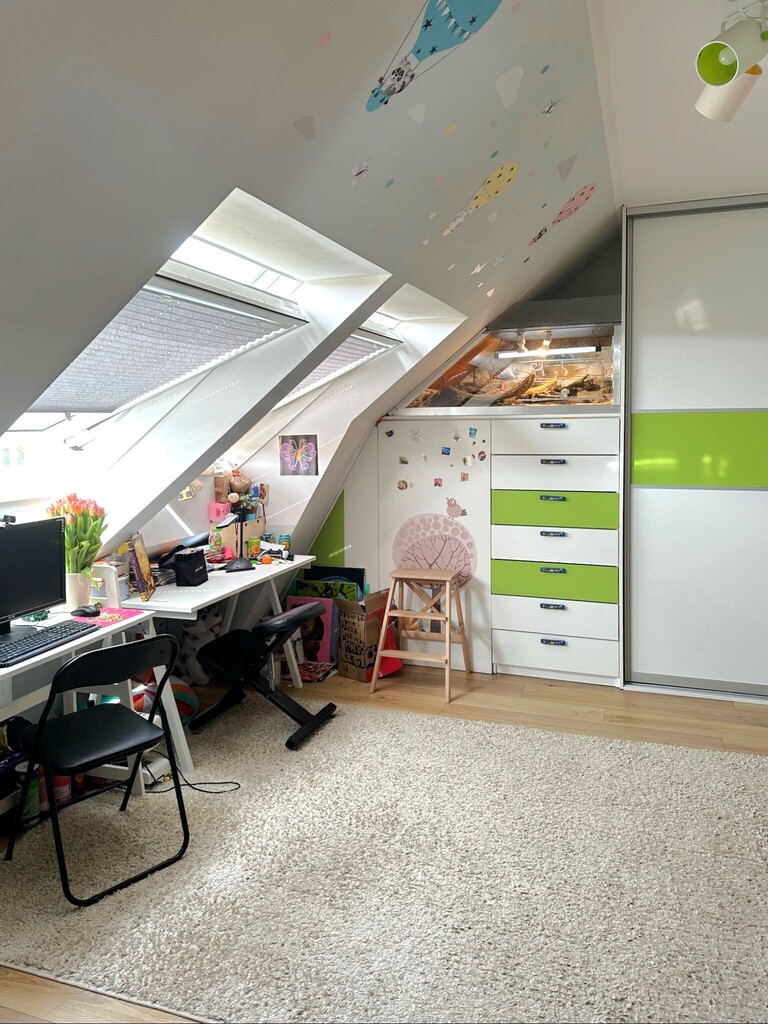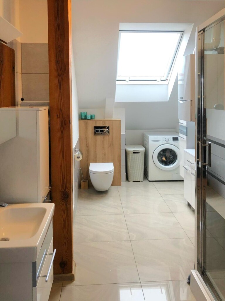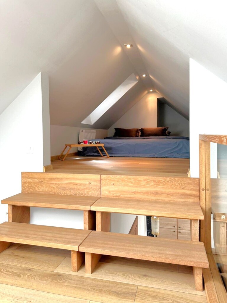 * triple glazed PVC Fakro windows with pleats and external sun blinds, which provide protection from the sun in the summer. In the winter, roof windows provide plenty of natural light, which translates into energy savings and well-being.
